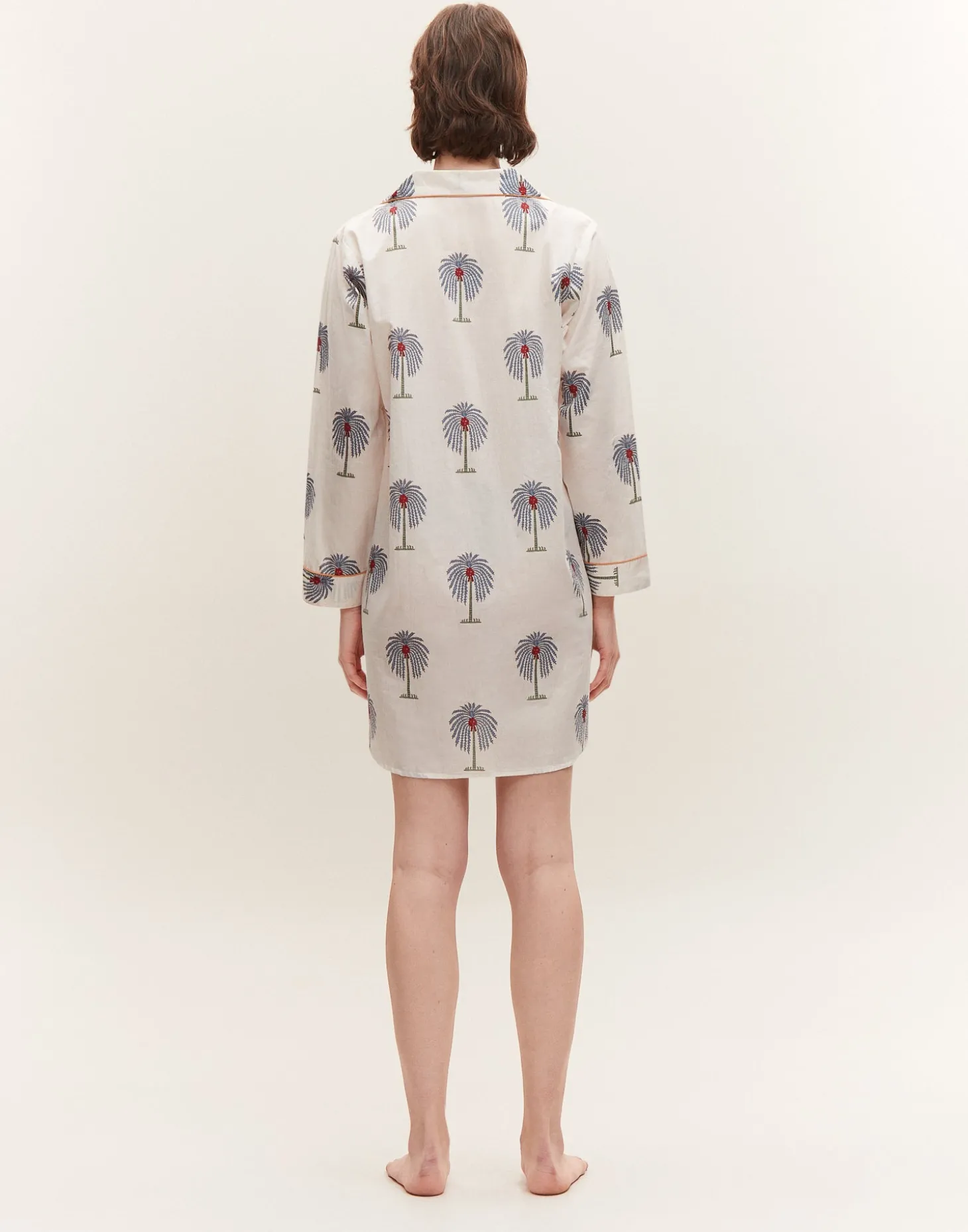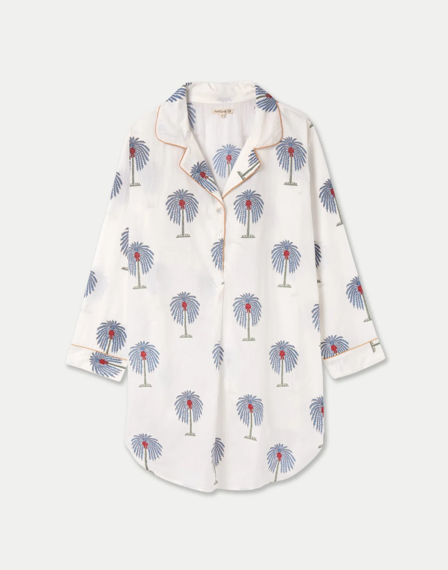 Camisón de cuello camisero y manga larga confeccionado en algodón. Cierre parcial de botones.