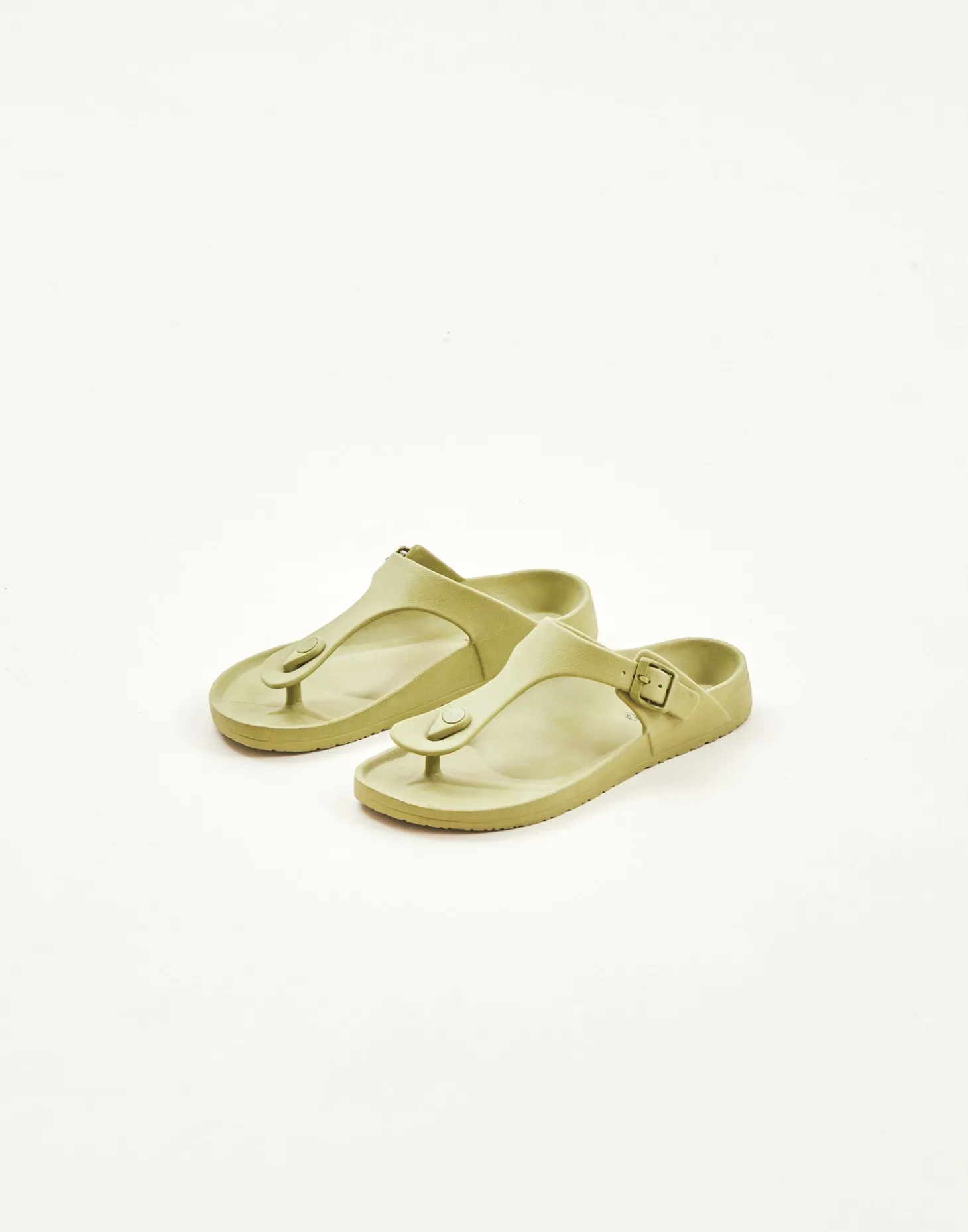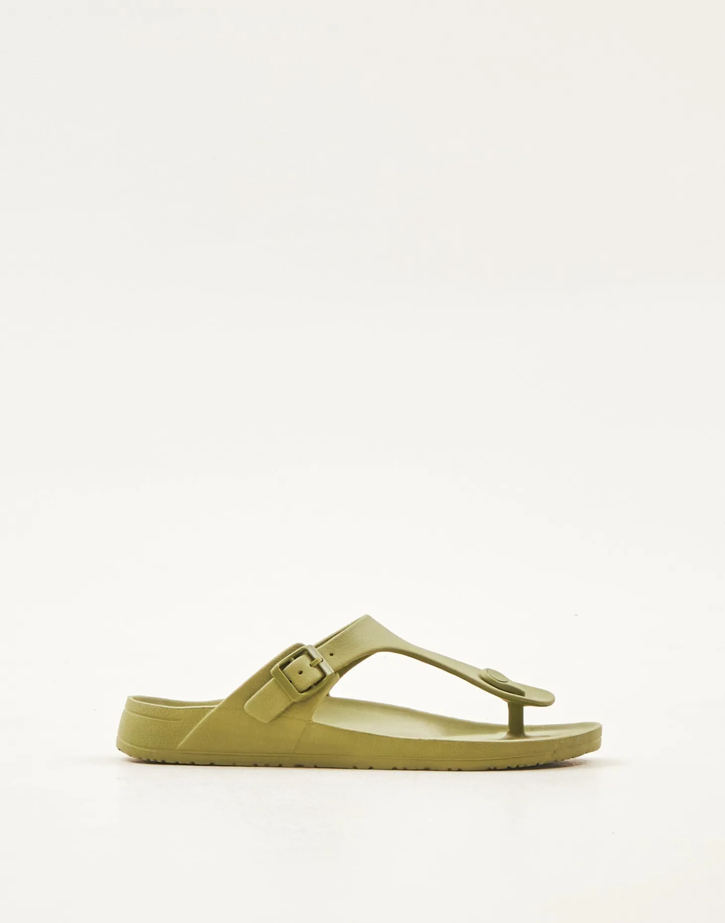 Sandalia de dedo ergonómica hecha en goma con ajuste mediante tira con hebilla.