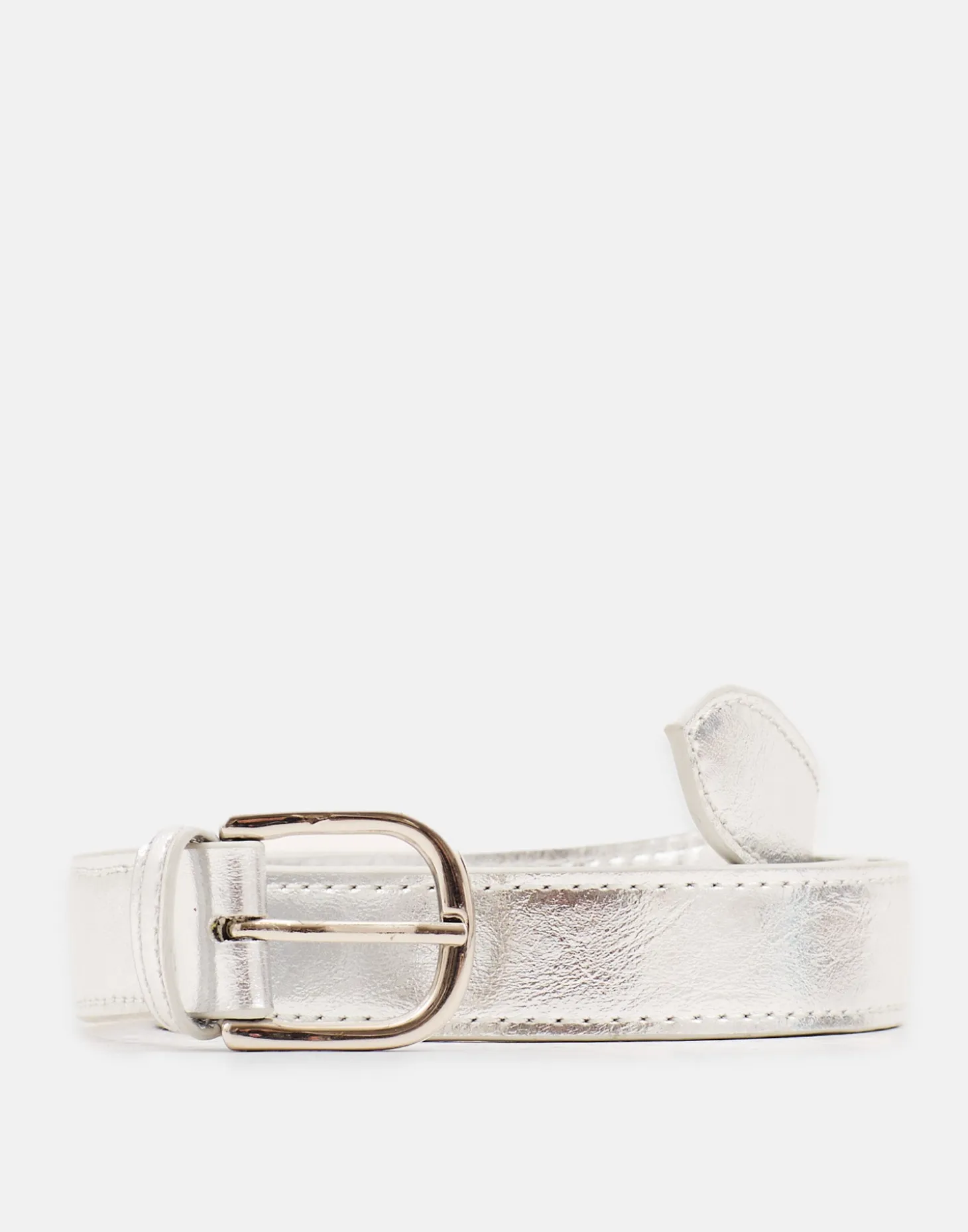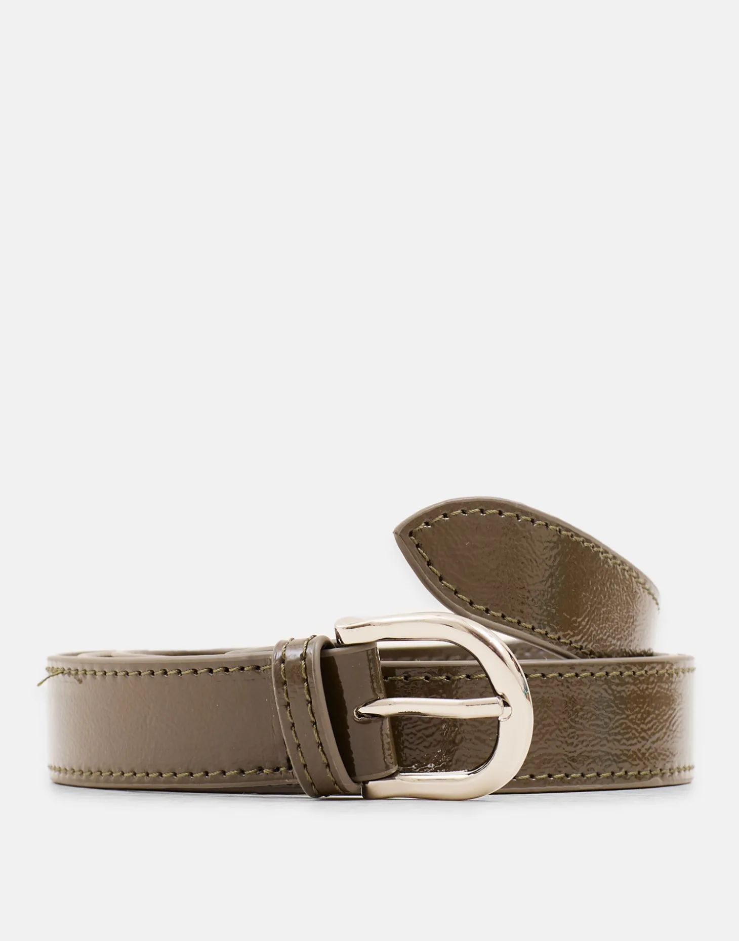 Cinturón con acabado tipo charol y hebilla metálica. Combínalo con nuestra cartera a conjunto.