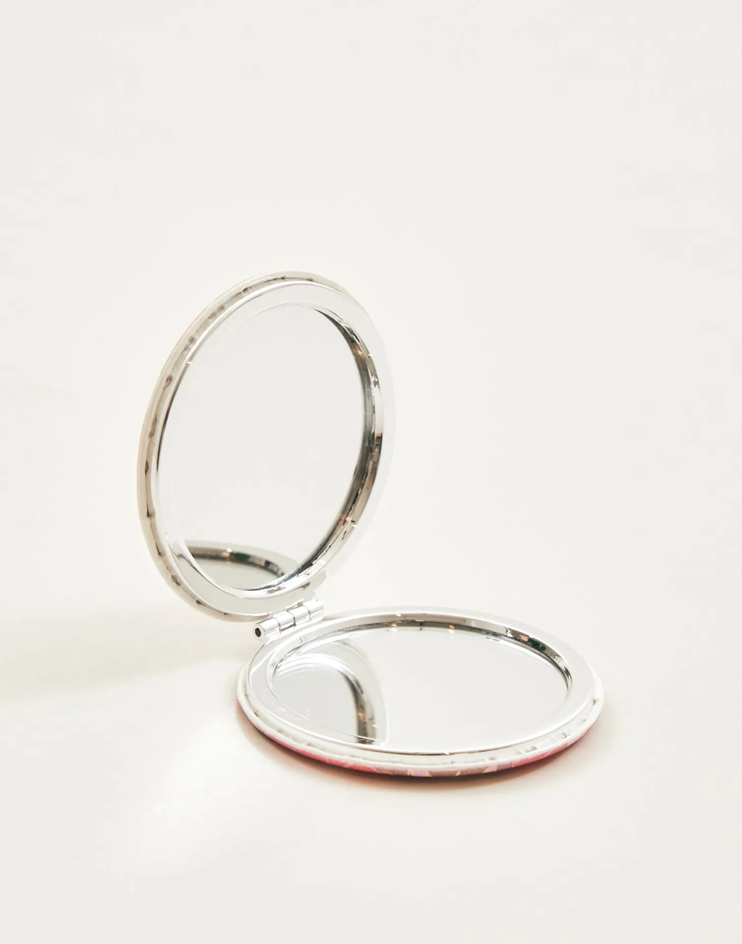 Espejo portátil de bolsillo con dos espejos: uno estándar y otro con aumento.