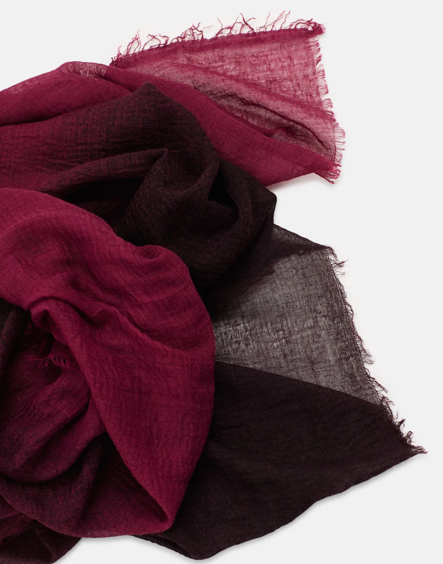 Pañuelo con estampado en degradé y detalle de terminaciones deshilachadas.