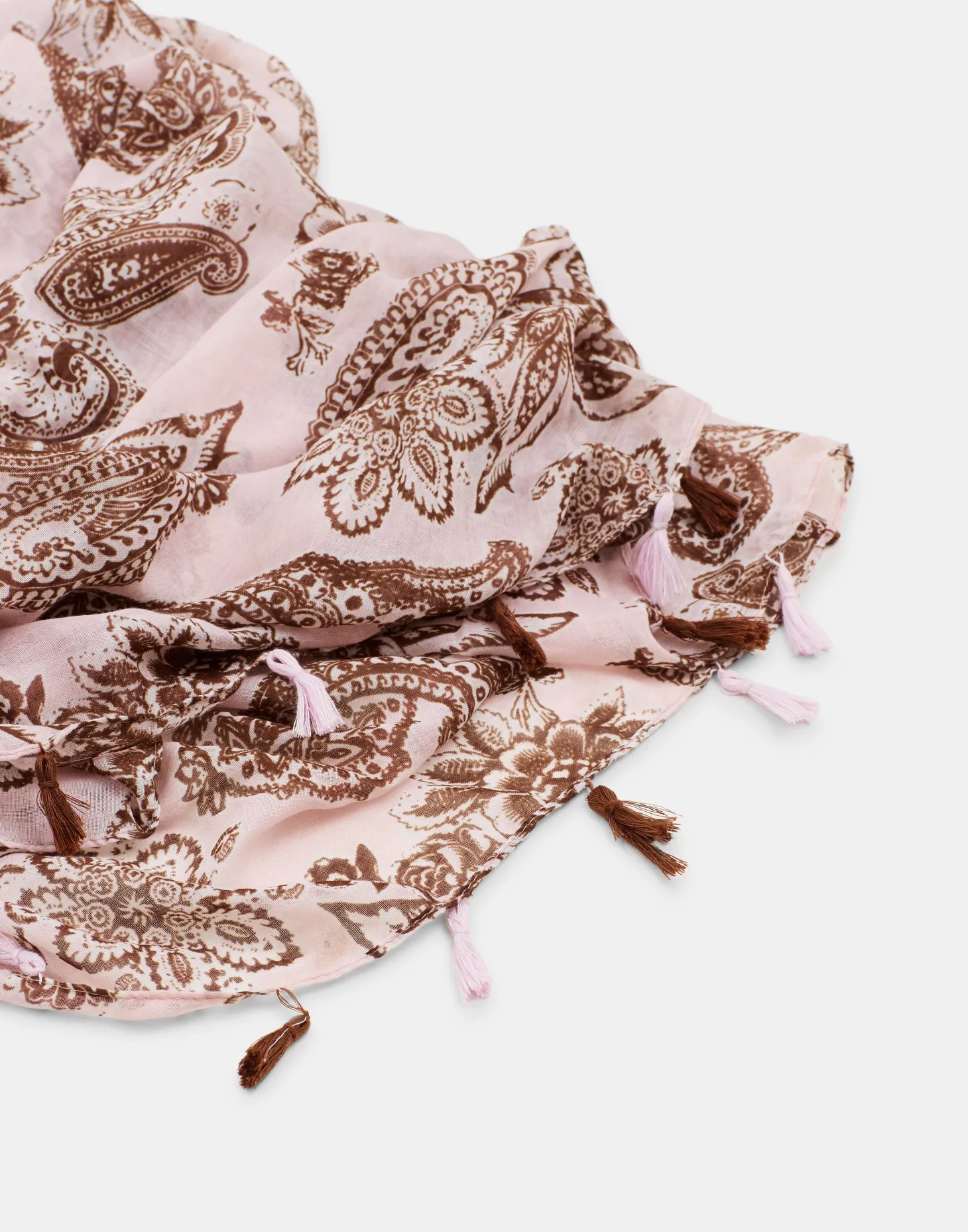 Pañuelo estampado con terminaciones con pompones.