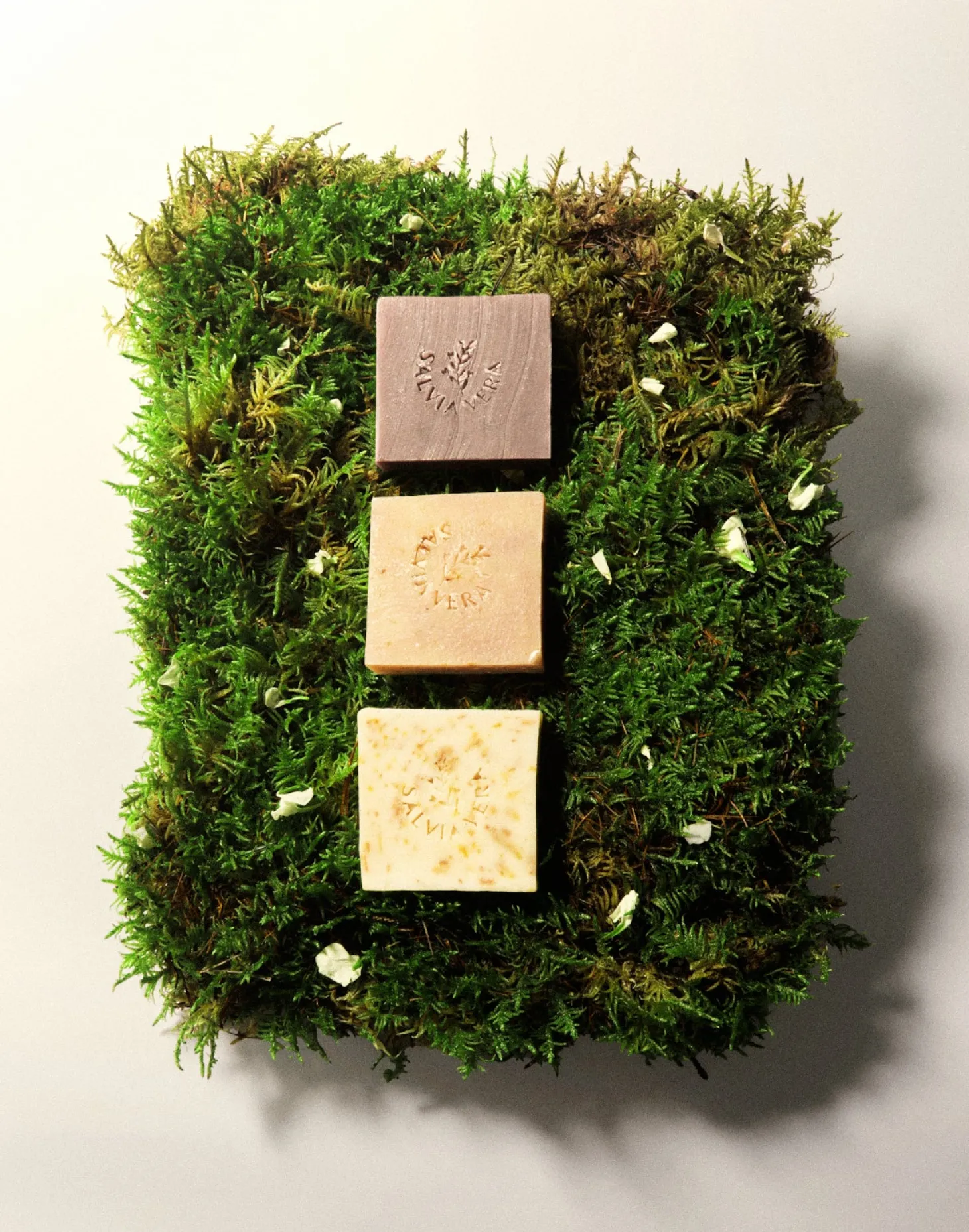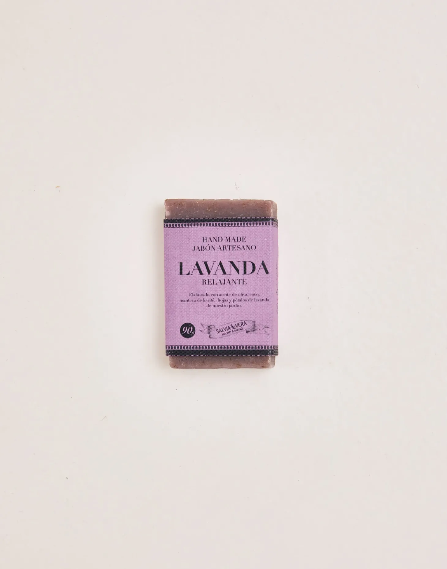 Lavanda: idóneo para pieles castigadas. Ecológico, fabricado artesanalmente mediante procesos en frío, con arcillas naturales, flores y hojas de lavanda de su huerta, desecadas y micronizadas. Tiene propiedades nutritivas y regenerantes con un toque de exfoliación.