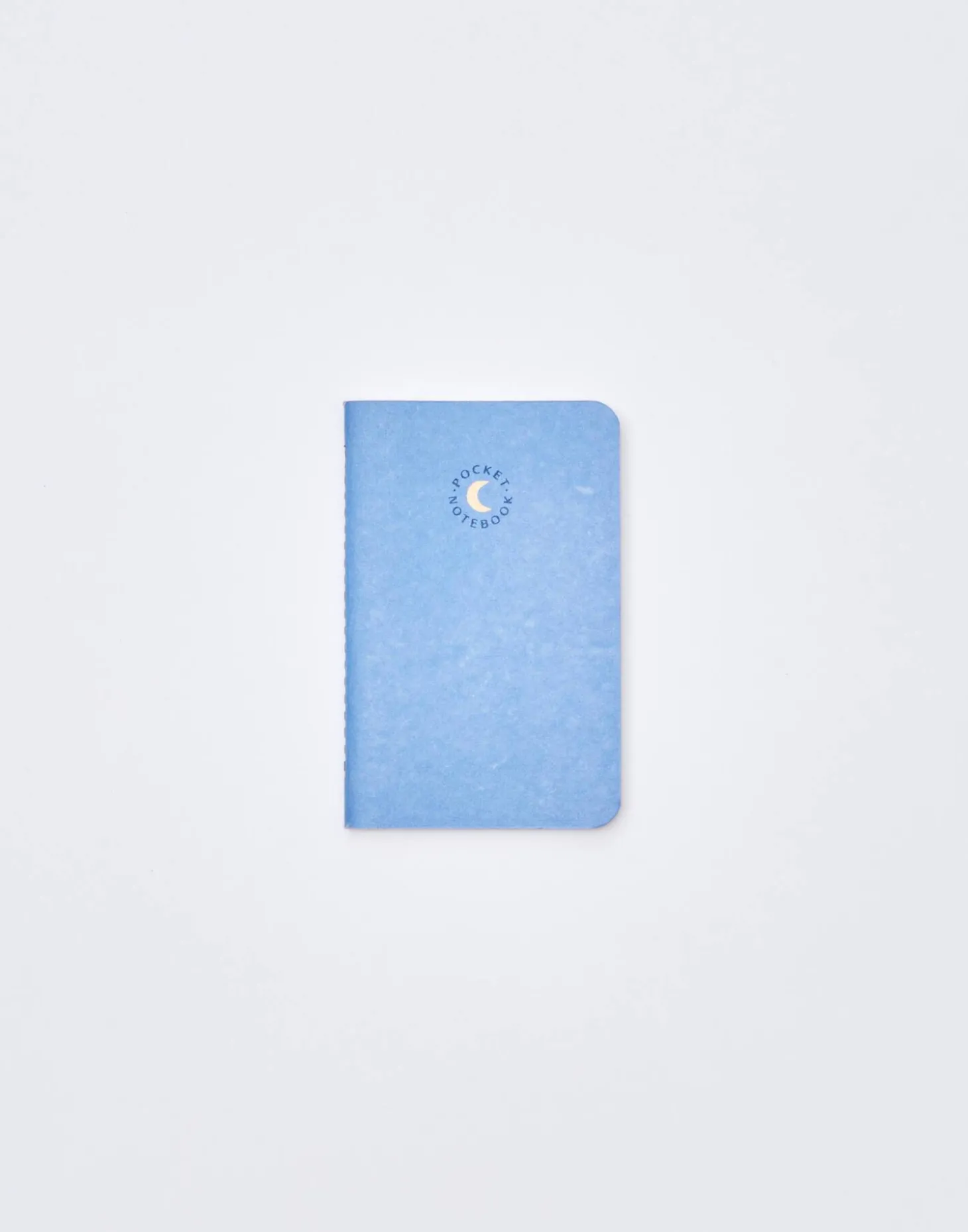 Libreta de formato pequeño con mensaje dorado en la parte frontal y tapa blanda. Páginas lisas.