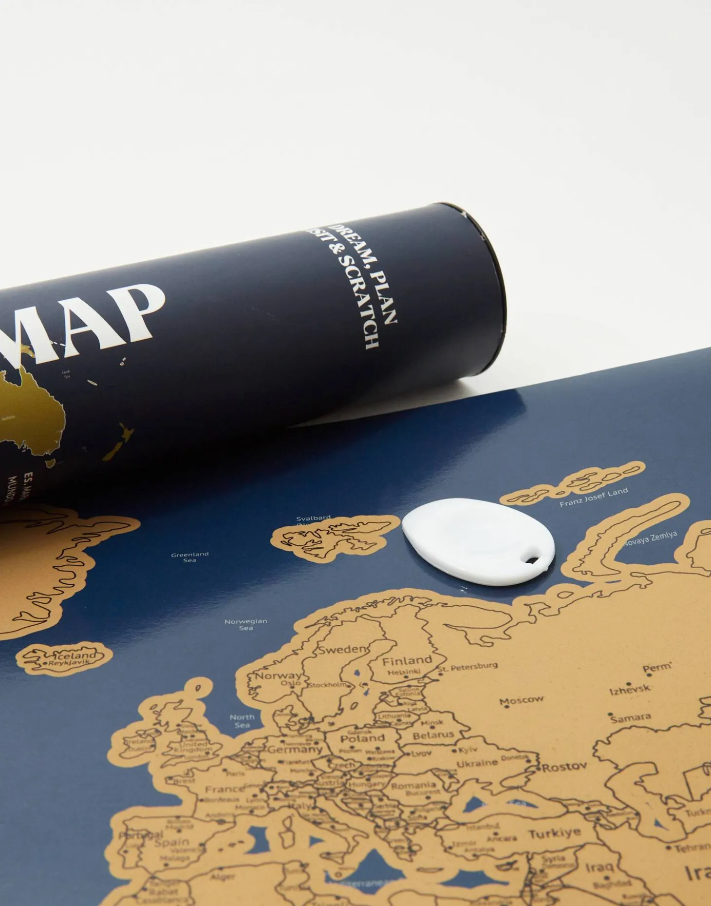 Si te gusta viajar, decora tu hogar con este mapa para rascar. Deberás rascar los países que visitas para completar el mapa. Incluye tubo para transportar o almacenar y púa para rascar.