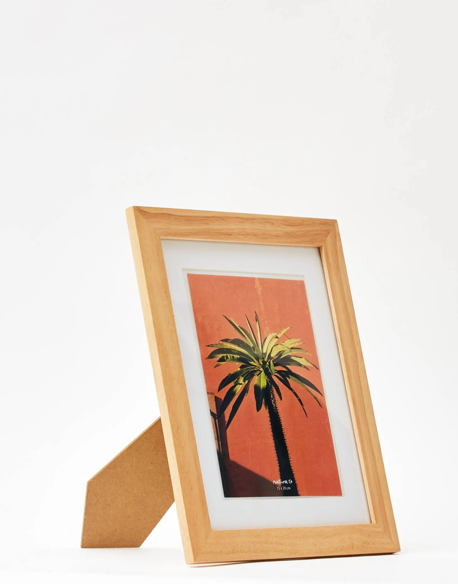 Marco de madera con pie en la parte trasera y pieza para colgar. Para fotos de 15×20 cm.