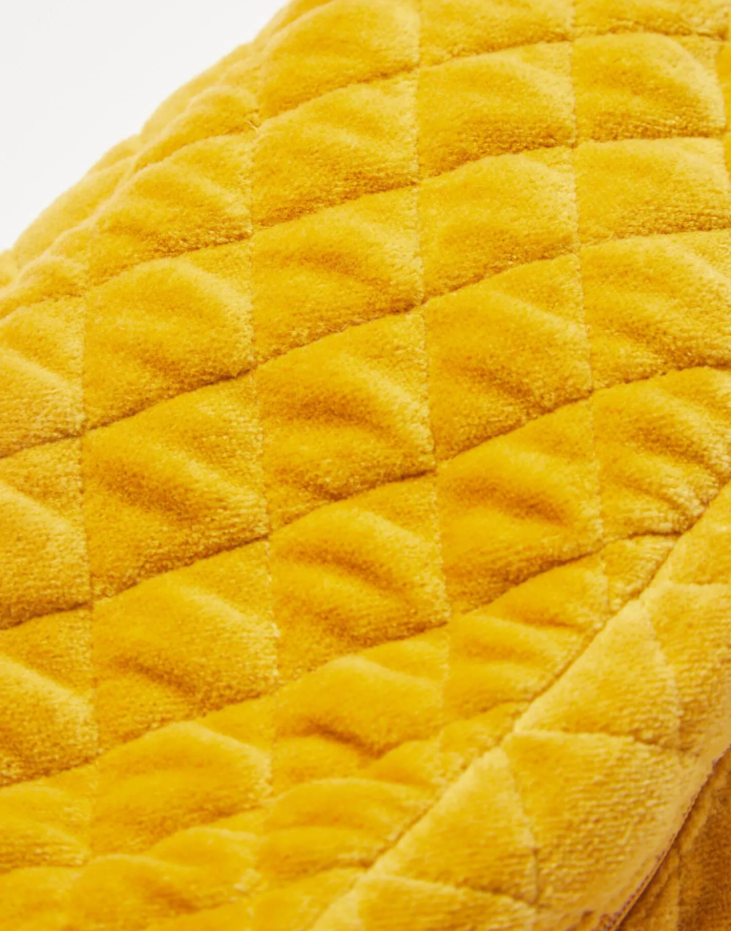 Neceser en tejido de terciopelo con apertura amplia y cierre de cremallera con detalle de tiras.