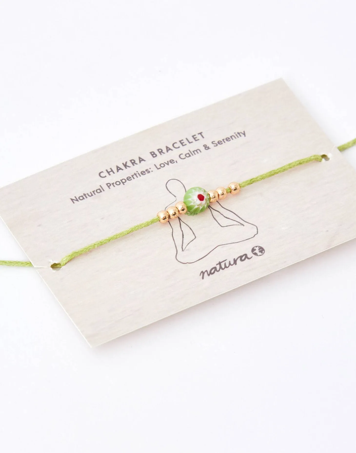 Pulsera de hilo con cuenta del color correspondiente a cada chakra y detalle de flor. Cierre de nudo corredizo.
