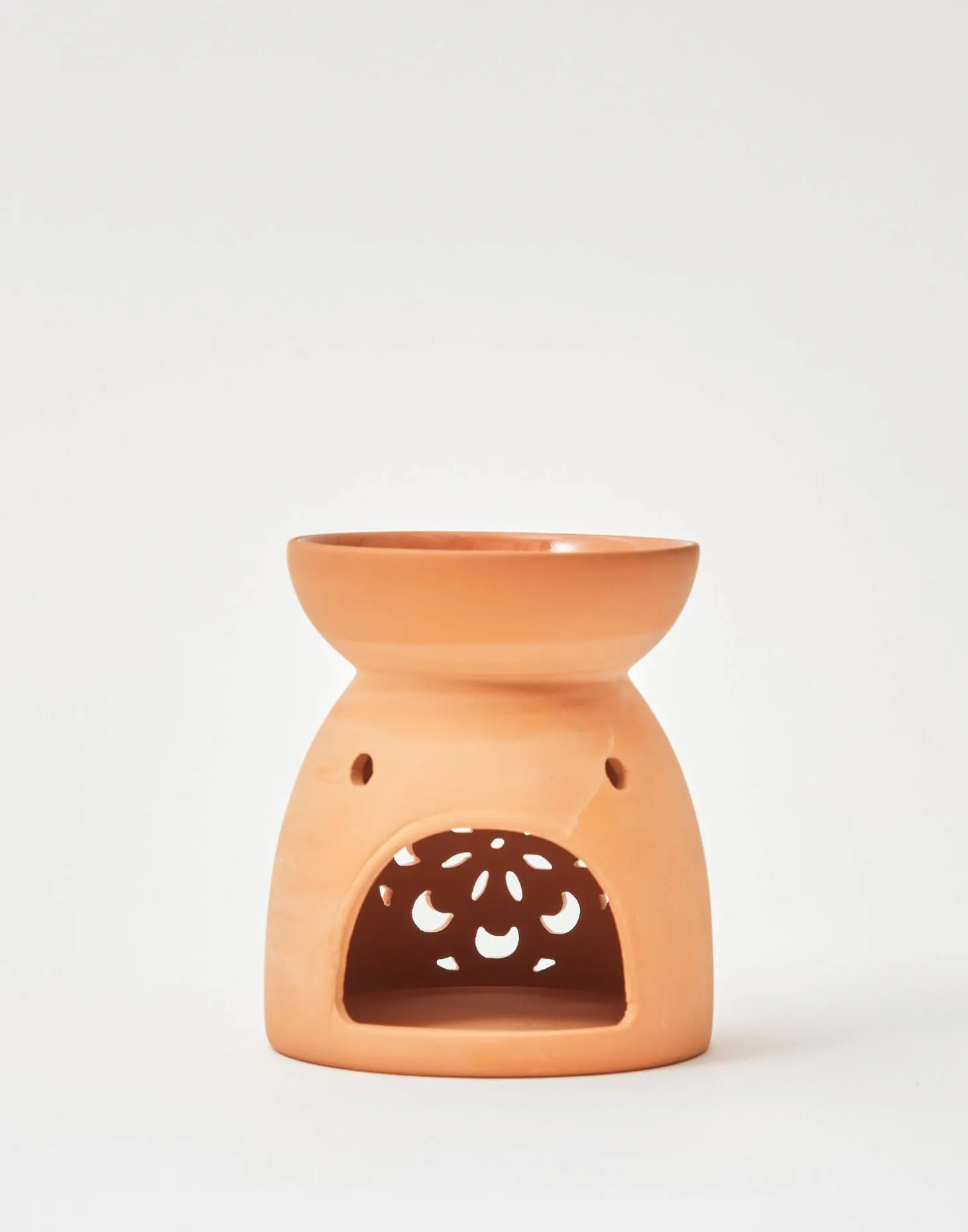 Quemador de cerámica con detalles troquelados. Utilízalo para ambientar tu hogar con la quema de esencias y aceites esenciales.