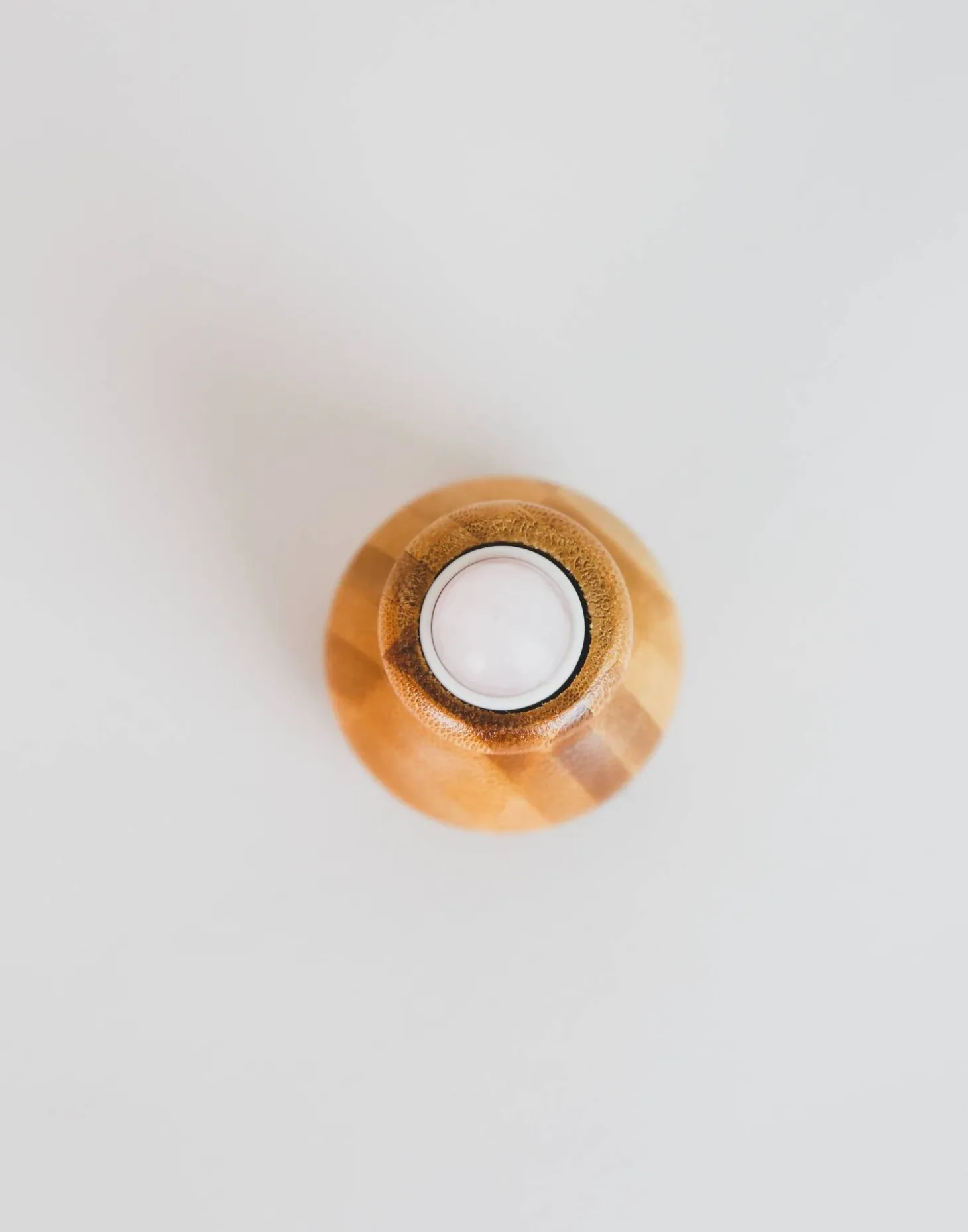 Masajeador roll-on de bambú con cuarzo rosa, para rostro y cuerpo. Aporta frescor inmediato, calma y relaja las zonas más sensibles de la piel activando la circulación.