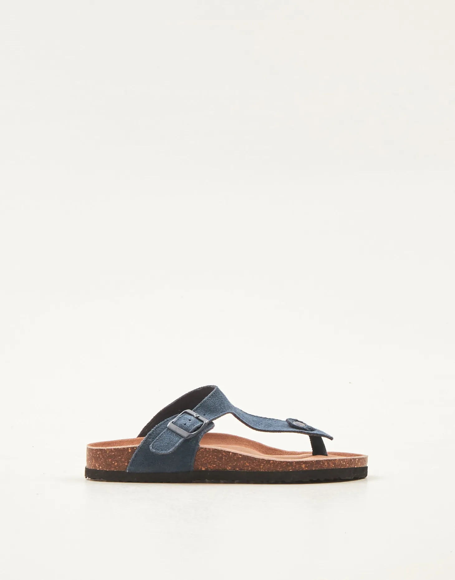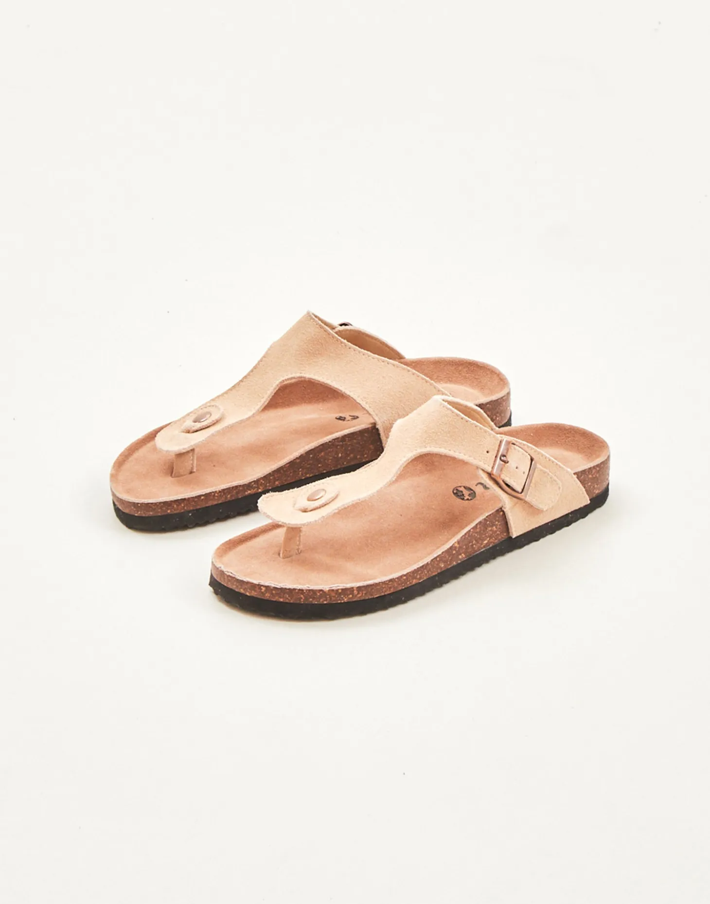 Sandalia de dedo ergonómica de piel. Ancho ajustable mediante hebilla.