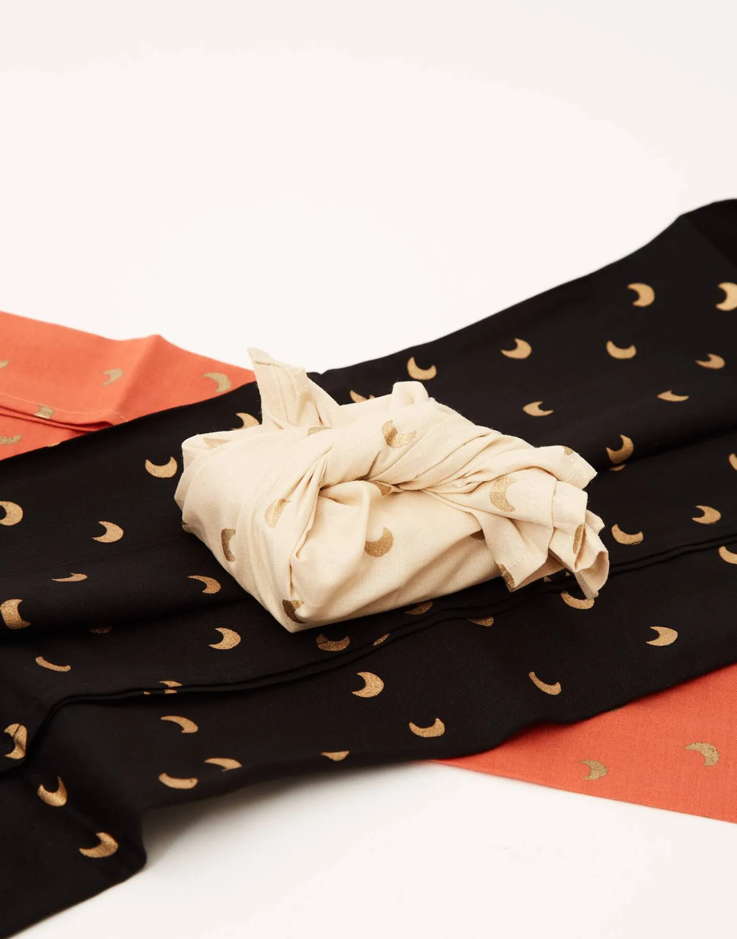 Set de 3 telas estampadas en medidas diferentes para que te unas a la tendencia del furoshiki, la técnica para envolver regalos de forma sostenible.