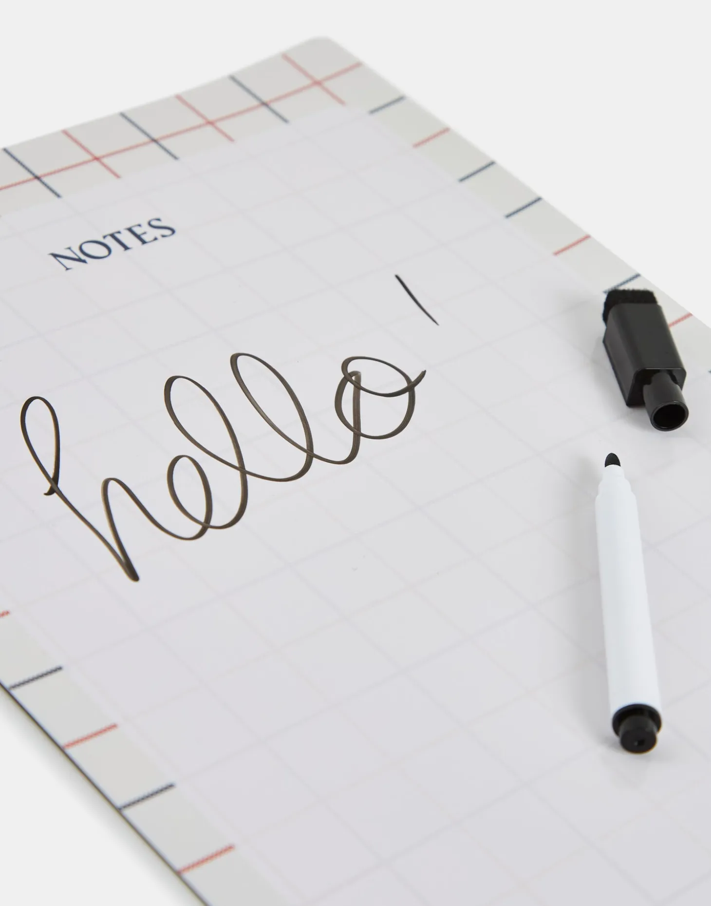 Set de tablero de notas magnético con rotulador. Perfecto para apuntar todo tipo de notas y mensajes. Con lado imantado para colocarlo en la nevera y tenerlo a la vista.
