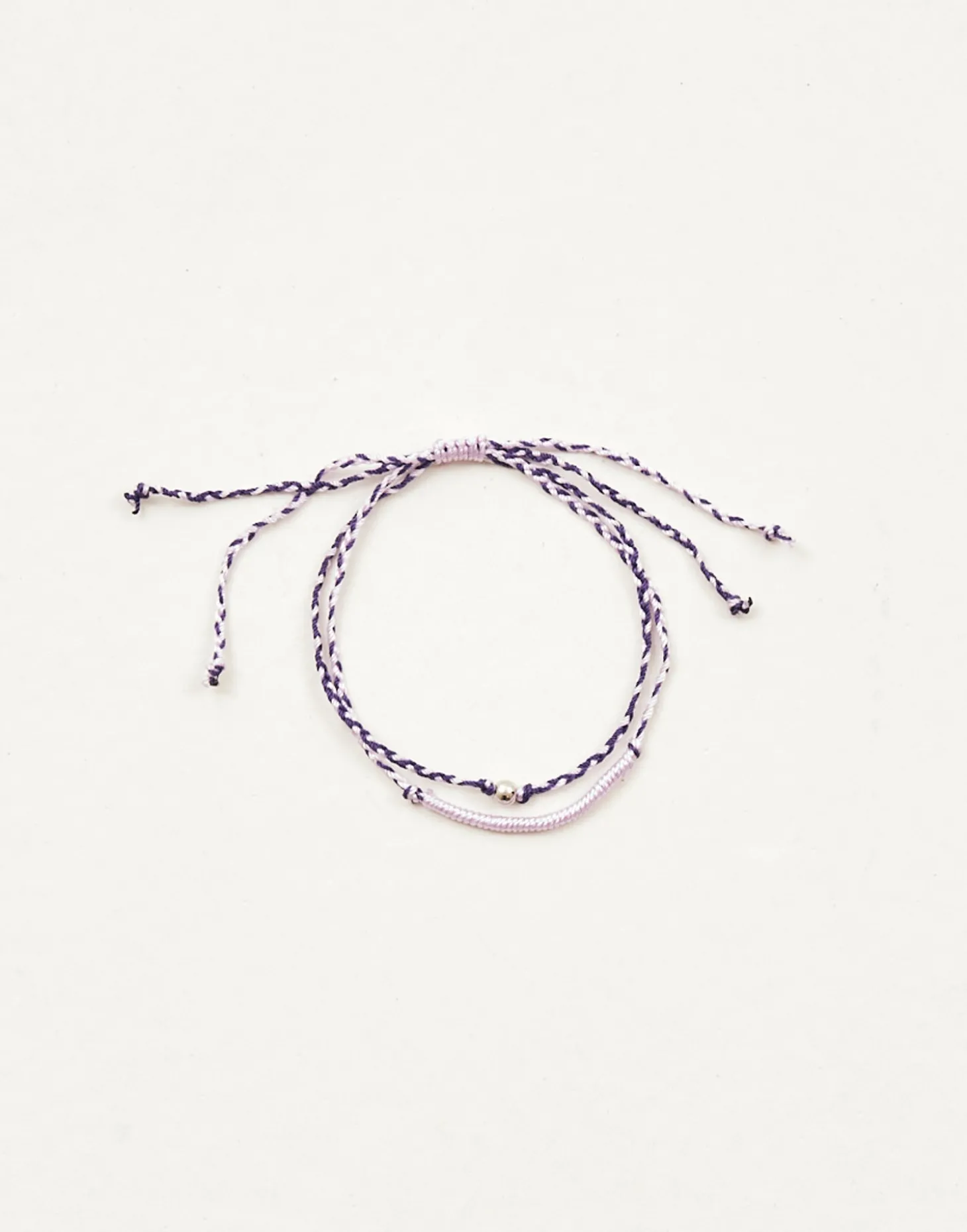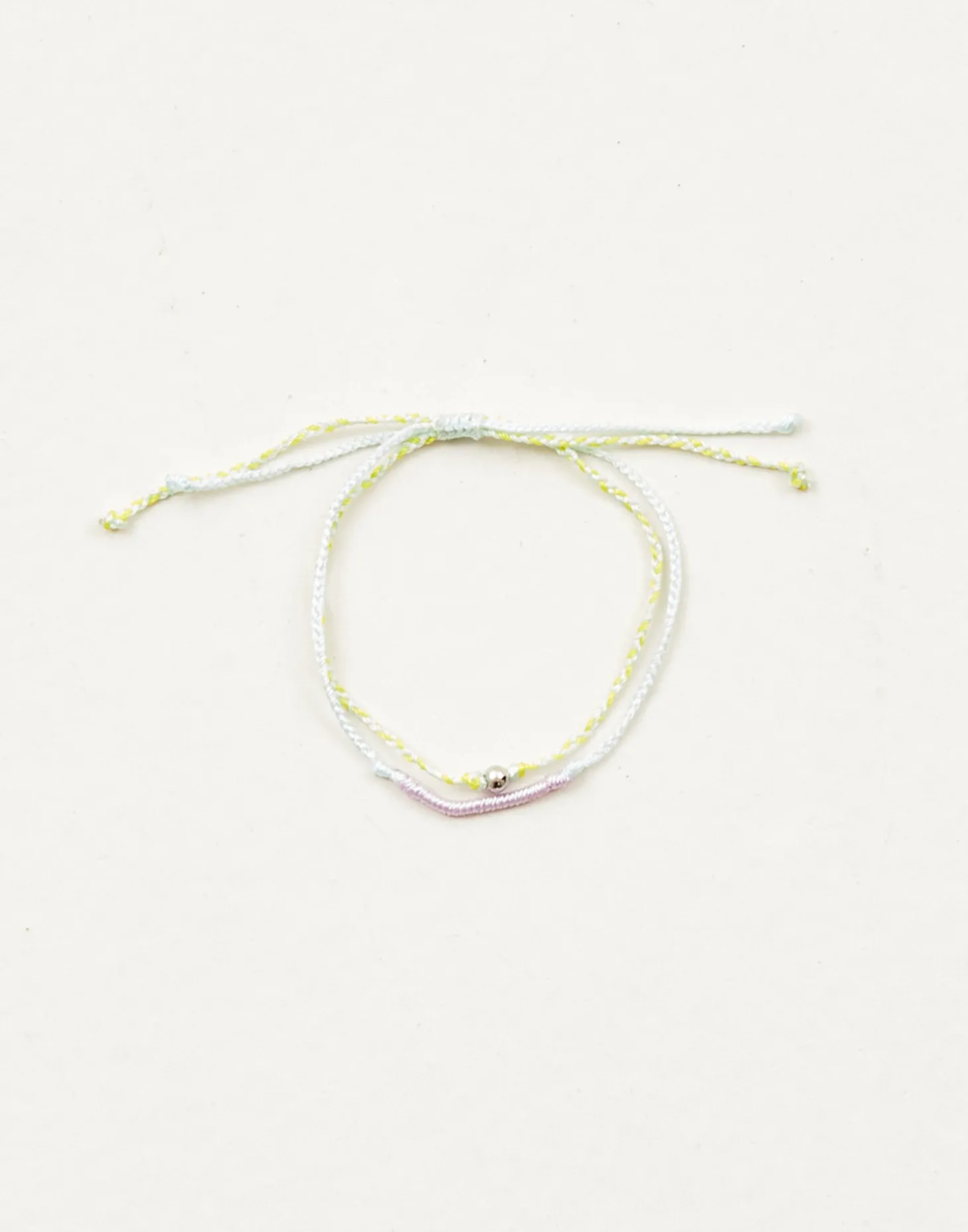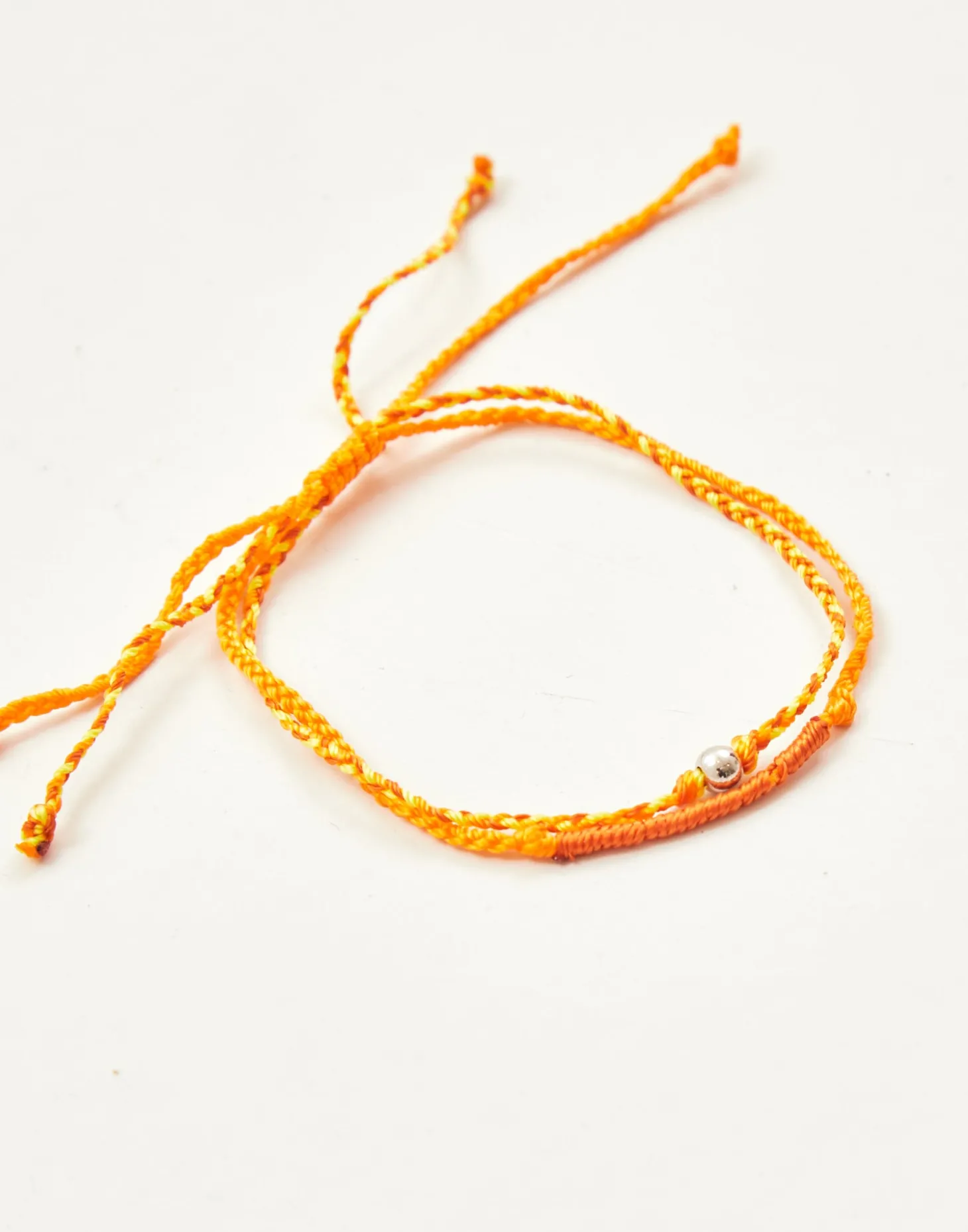 Tobillera de hilo trenzado doble con detalle de bolita. Cierre de cadena regulable de mosquetón.