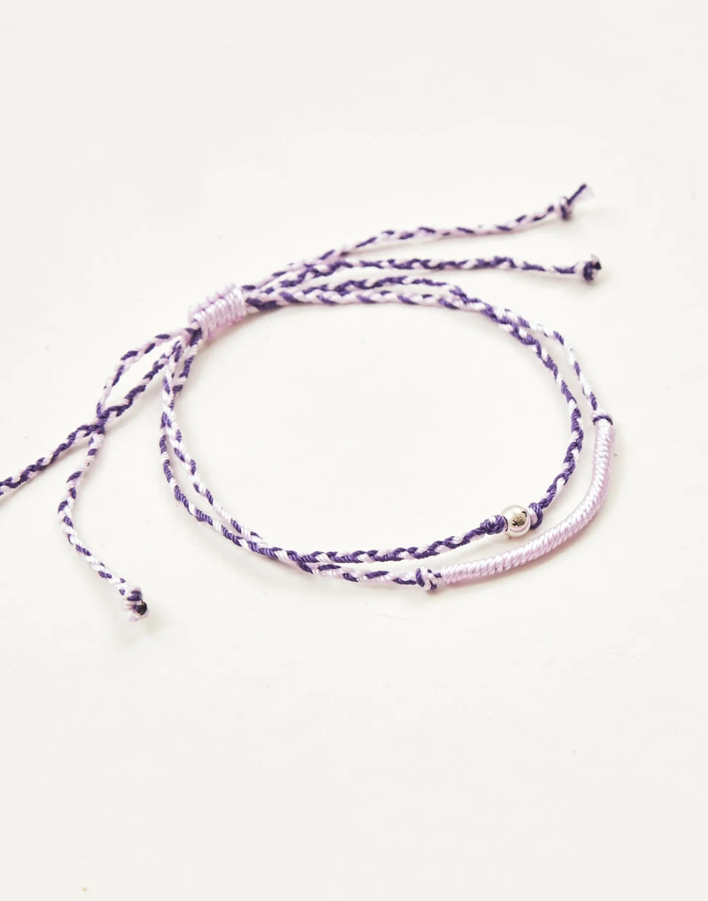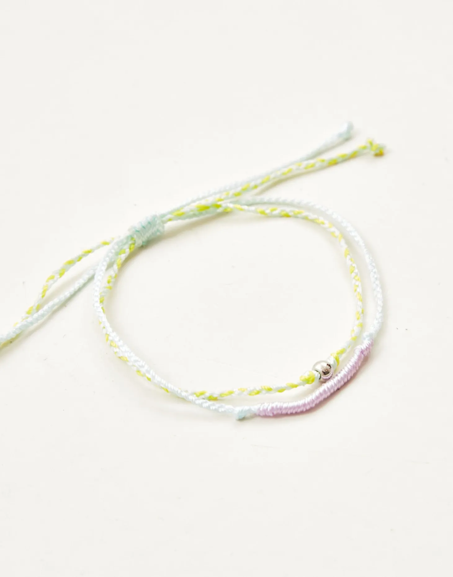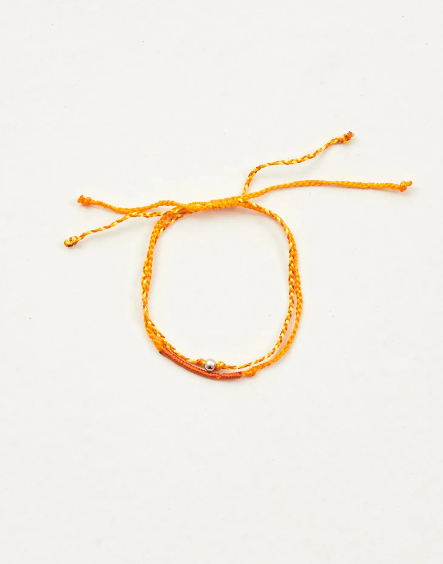 Tobillera de hilo trenzado doble con detalle de bolita. Cierre de cadena regulable de mosquetón.