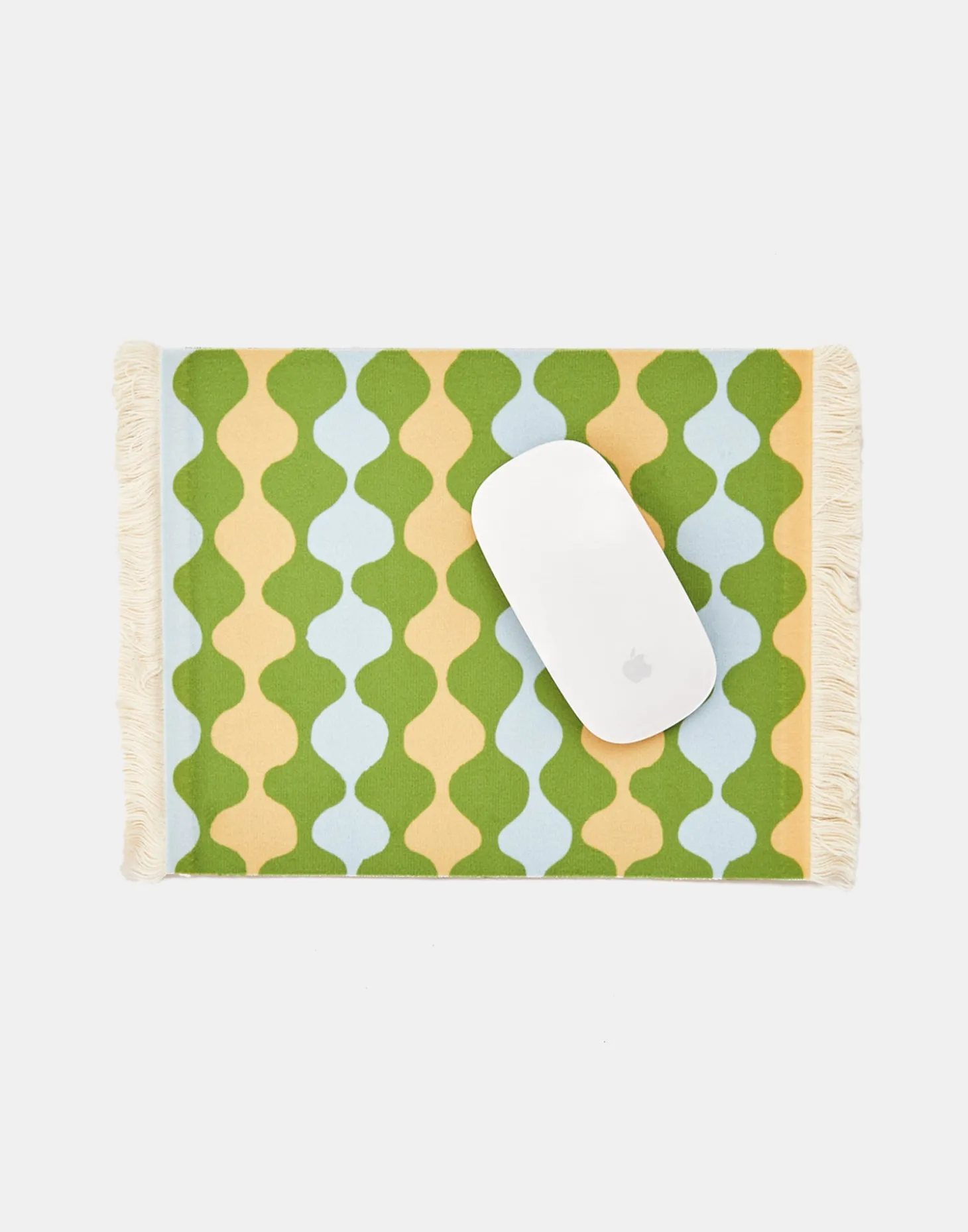 Alfombra de ratón estampada, con base antideslizante y terminaciones en flecos. Protege tu escritorio de rozaduras y proporciona una superficie lisa y uniforme para que el mouse se mueva con precisión.