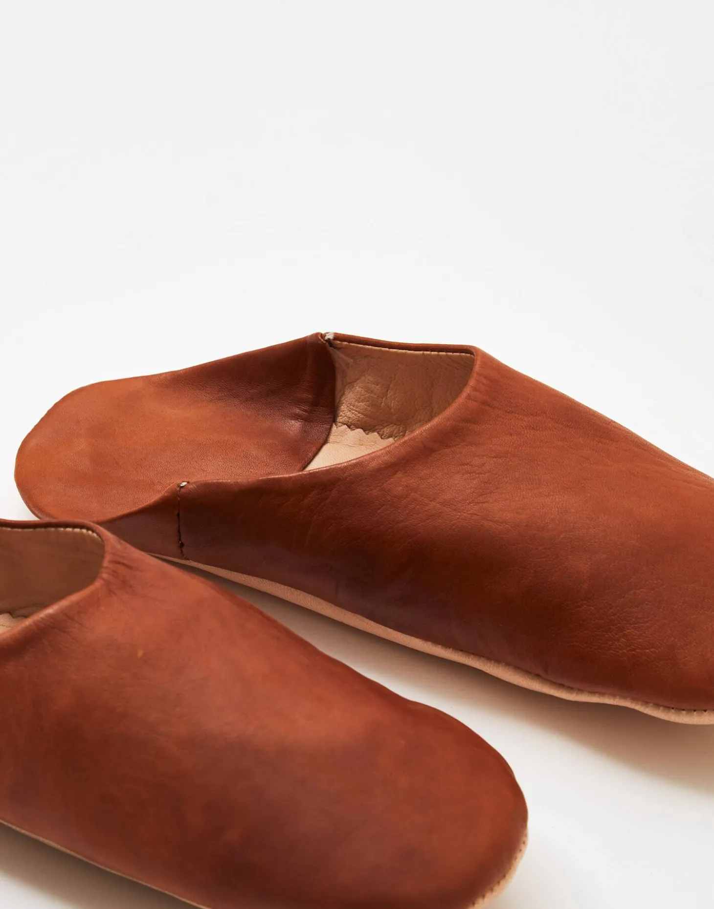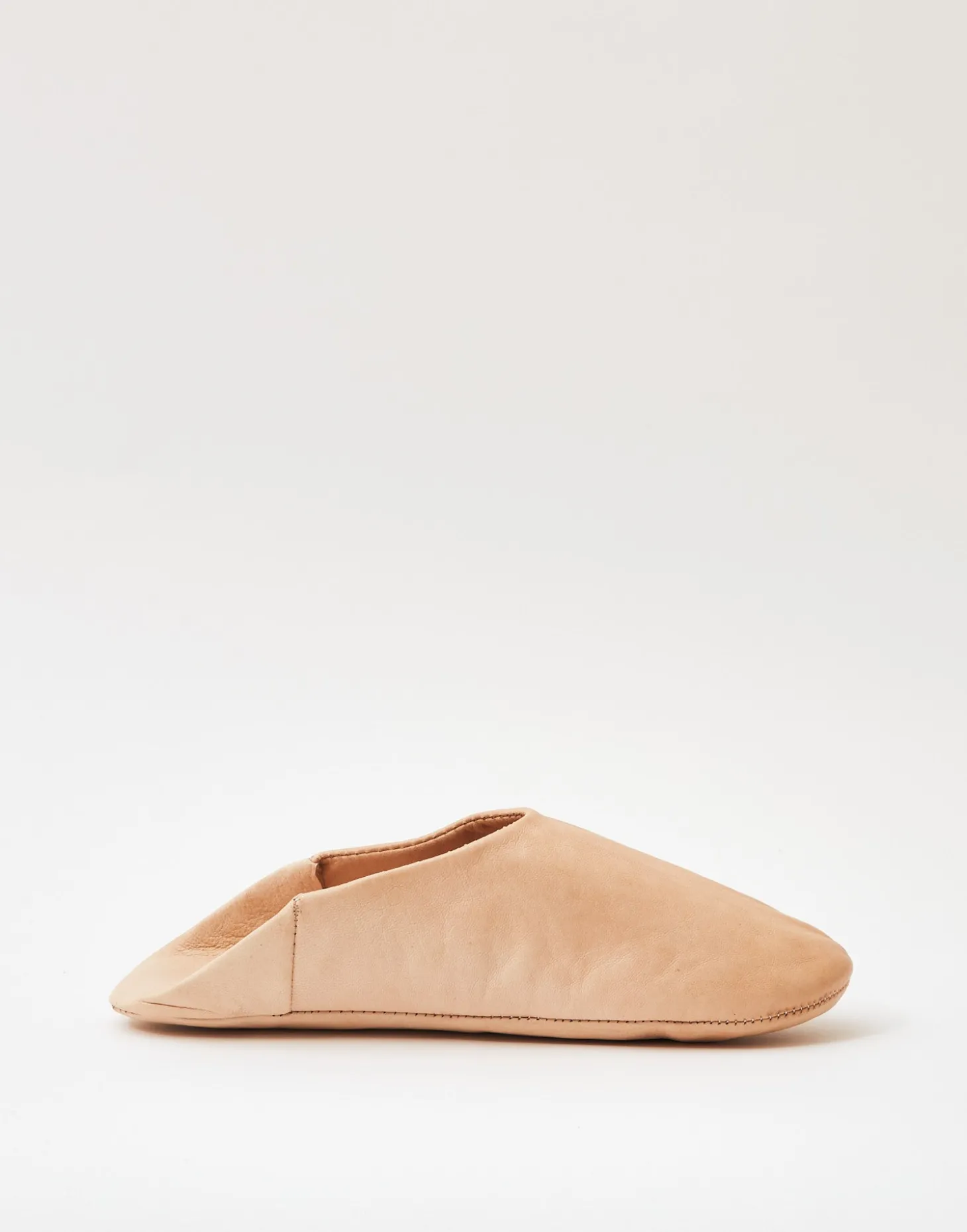 Babucha de piel hecha a mano en Marruecos. Acabada con talonera para sujetar el pie o para doblarla y usarla como sandalia.
