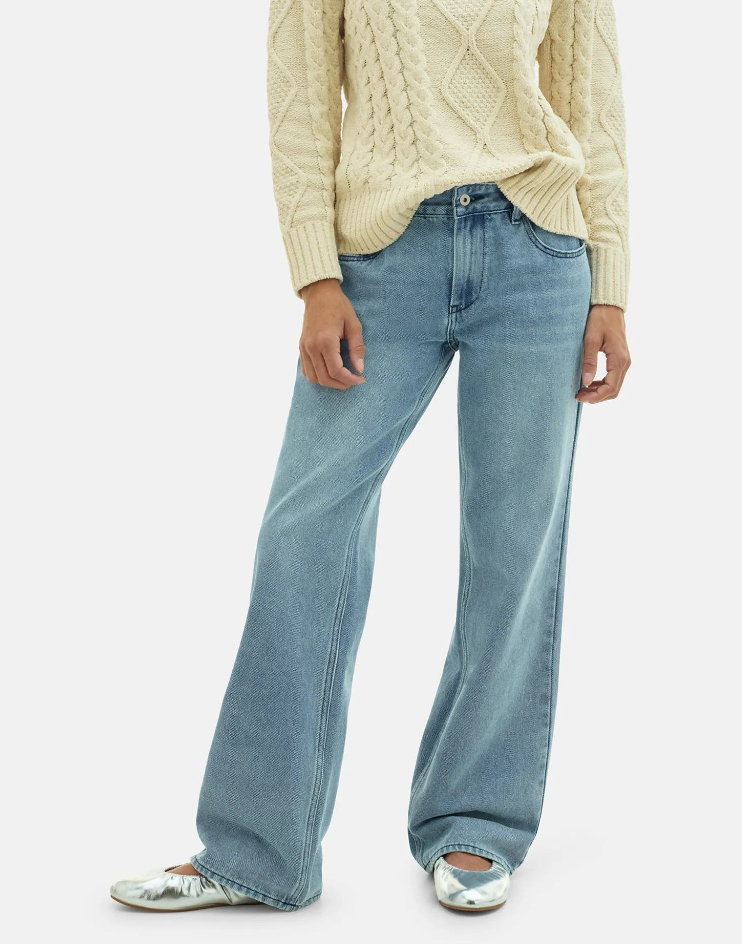 Zapato plano tipo bailarina mercedita con efecto acharolado plateado.