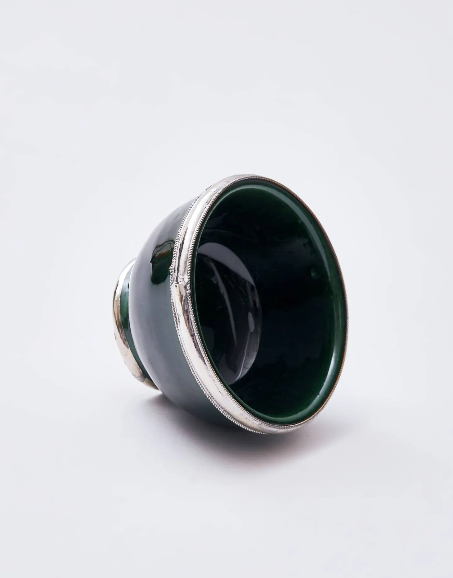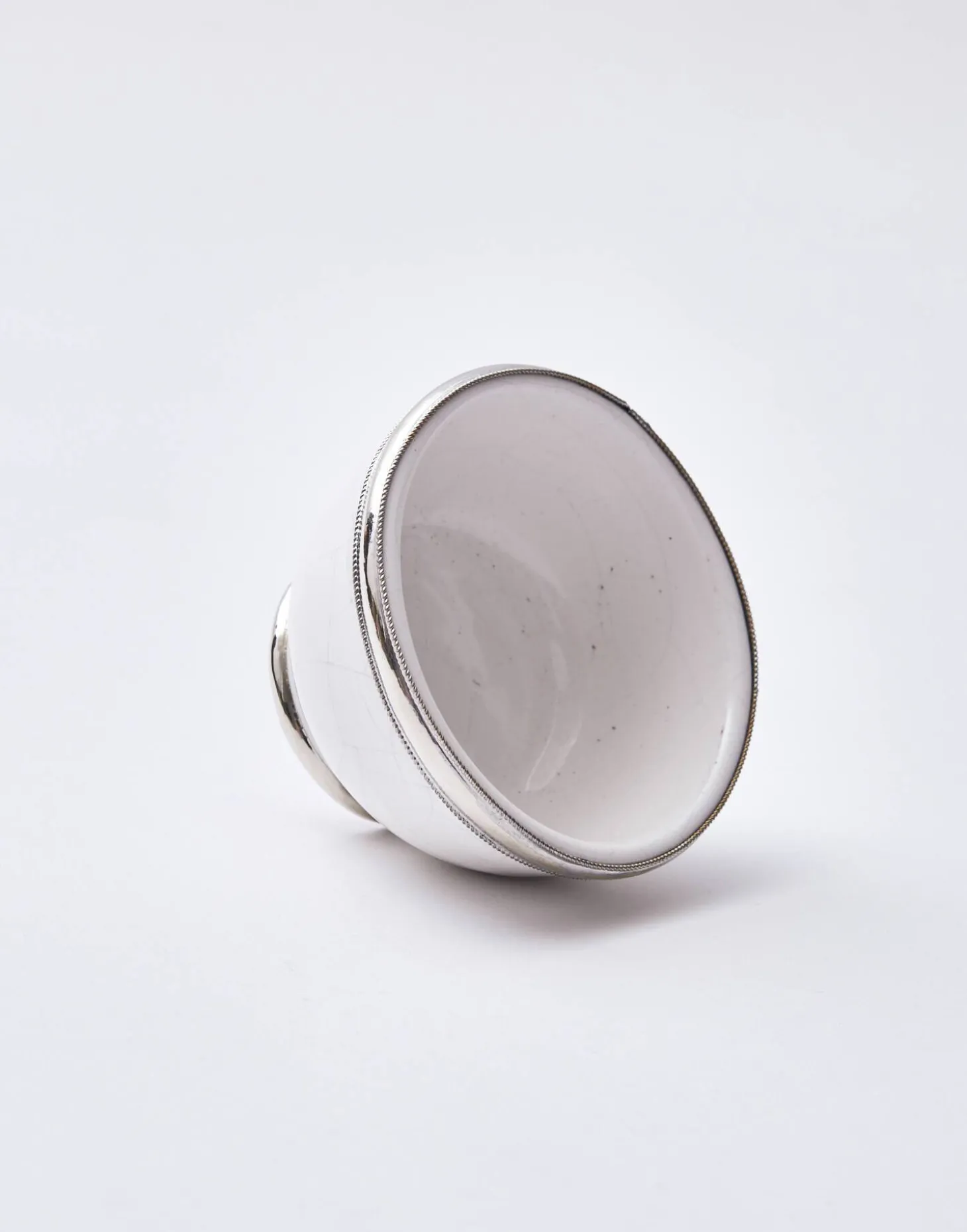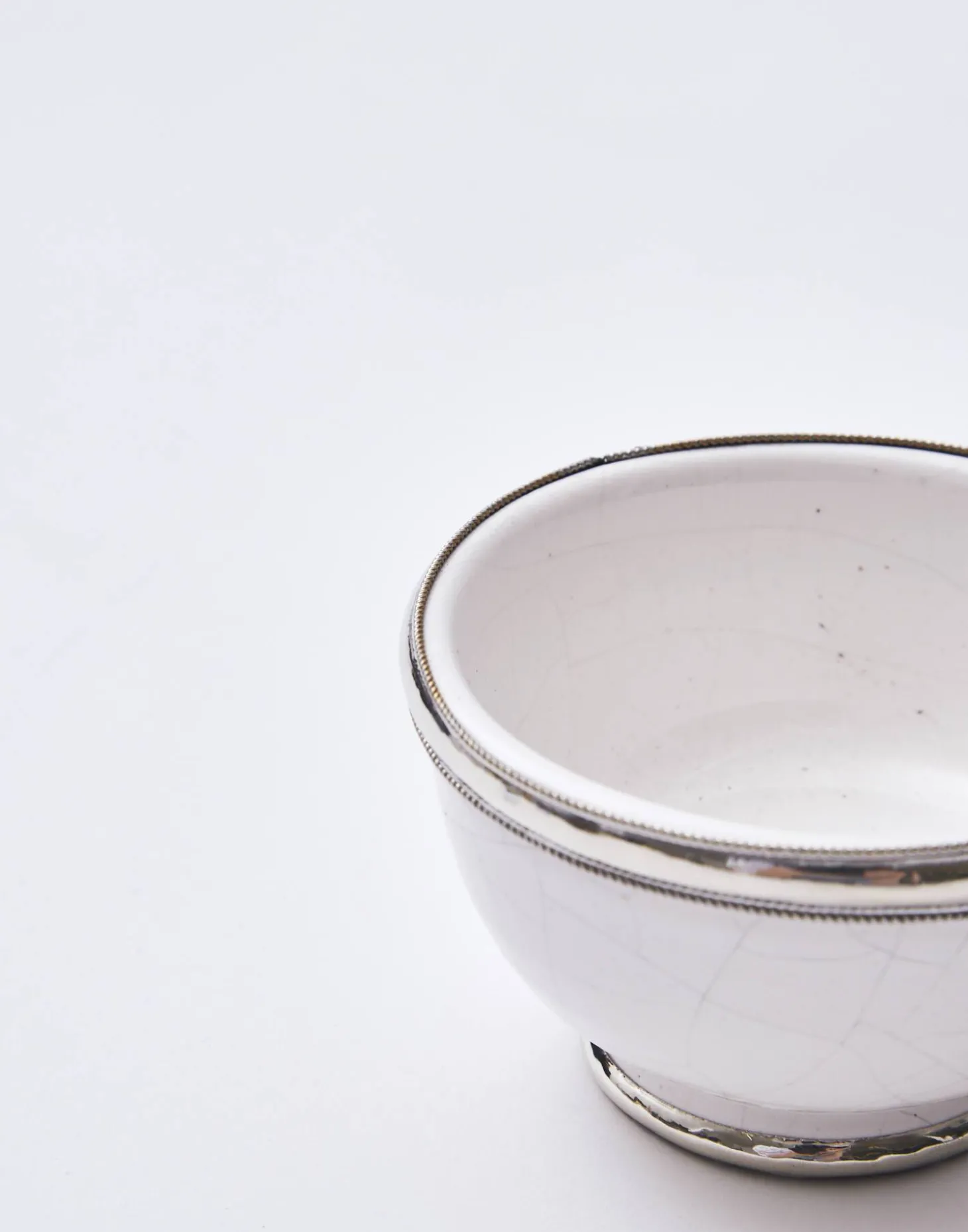 Cuenco marroquí pintado a mano fabricado en cerámica. Acabado con ribete plateado en los bordes.