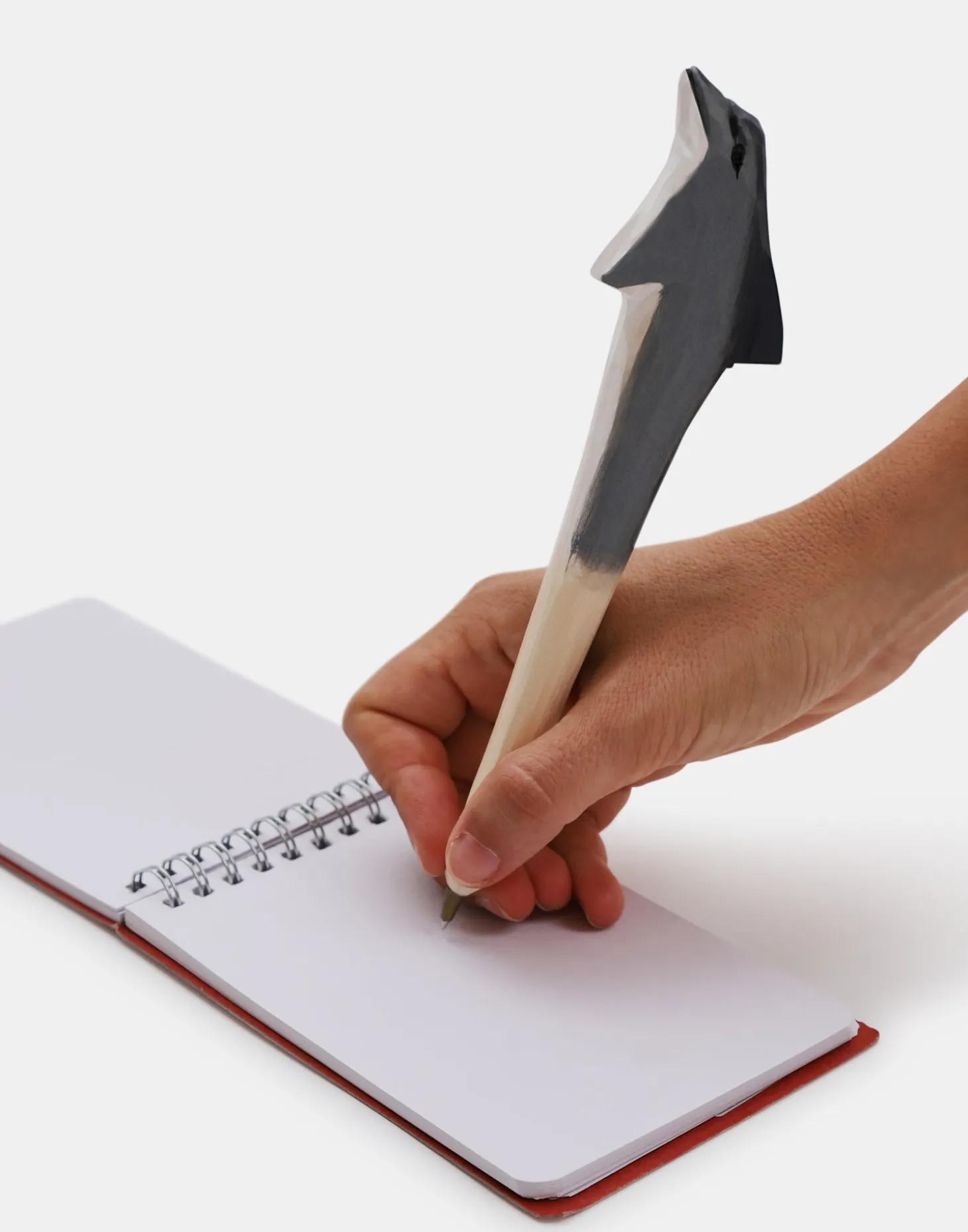 Bolígrafo de madera tallada en forma de animal.