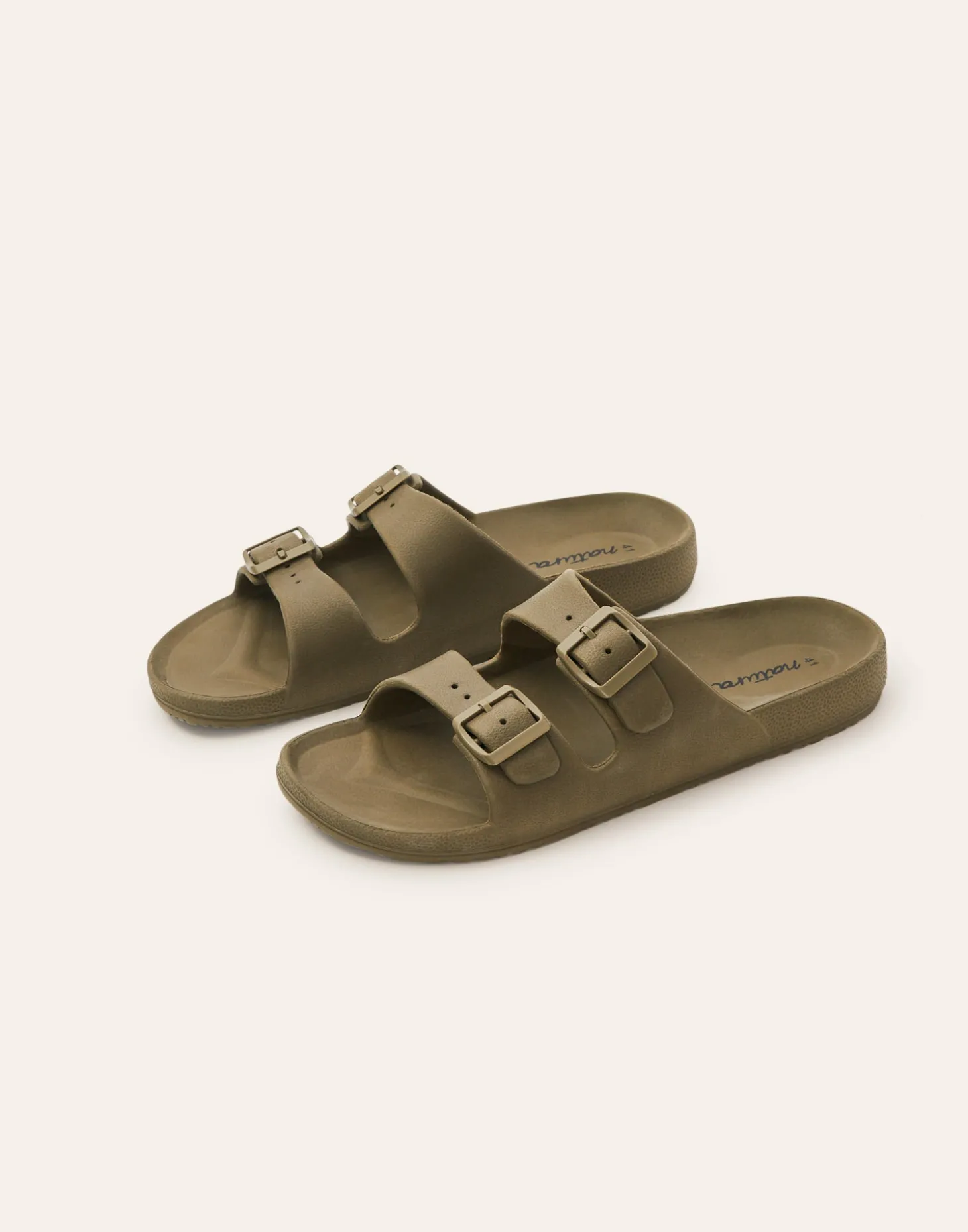 Sandalia de goma ergonómica con doble tira y cierre de hebillas regulables.
