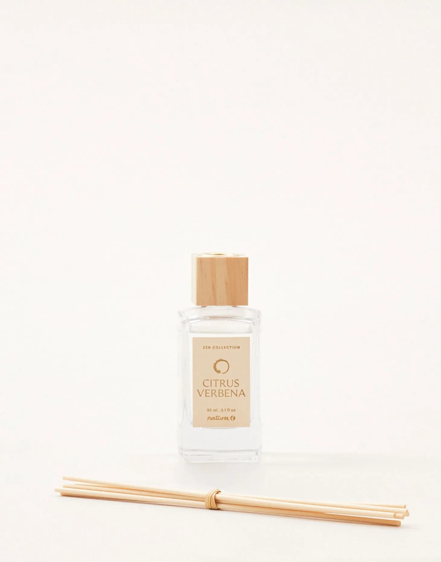 Ambientador de varillas en envase de cristal con varillas de ratán.