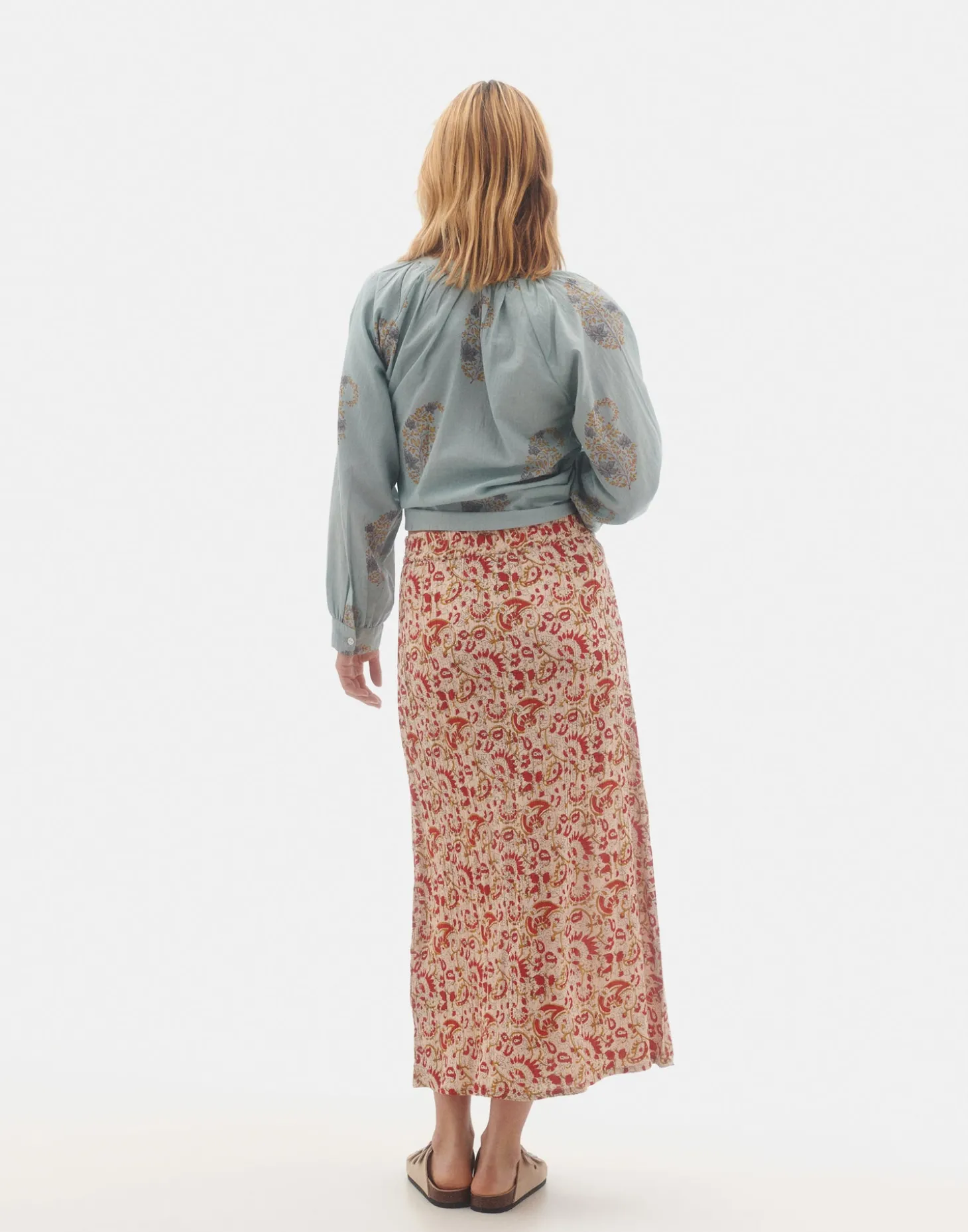 Falda larga estampada, de diseño recto y cintura elástica en la parte trasera.