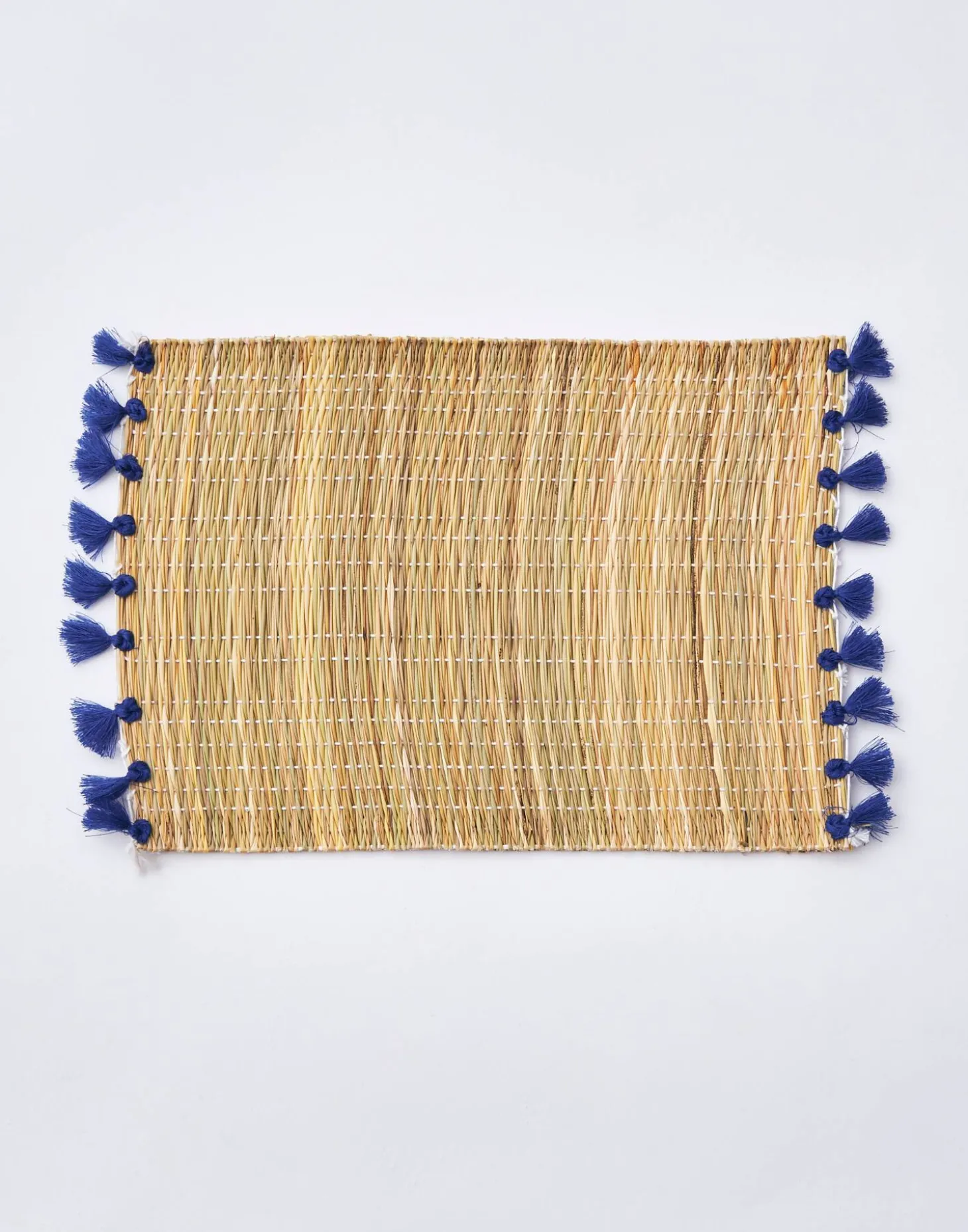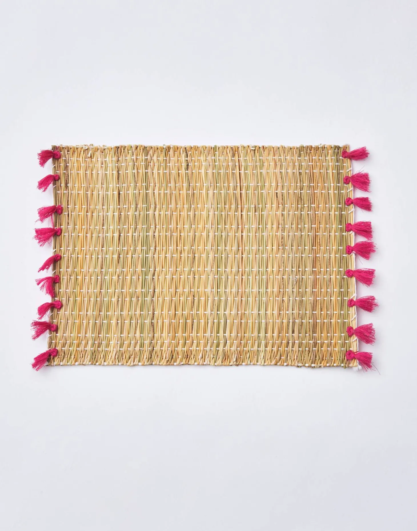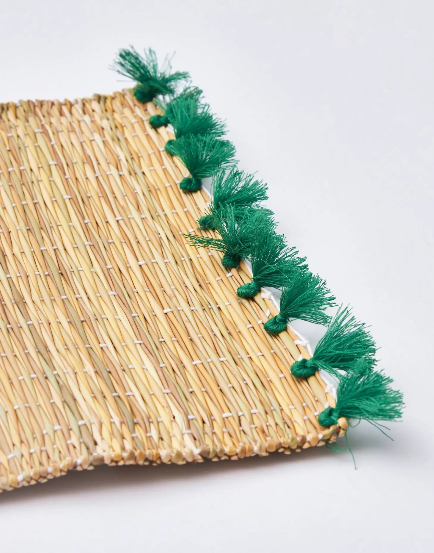 Mantel individual con pompones a dos lados, hecho a mano en Marruecos.