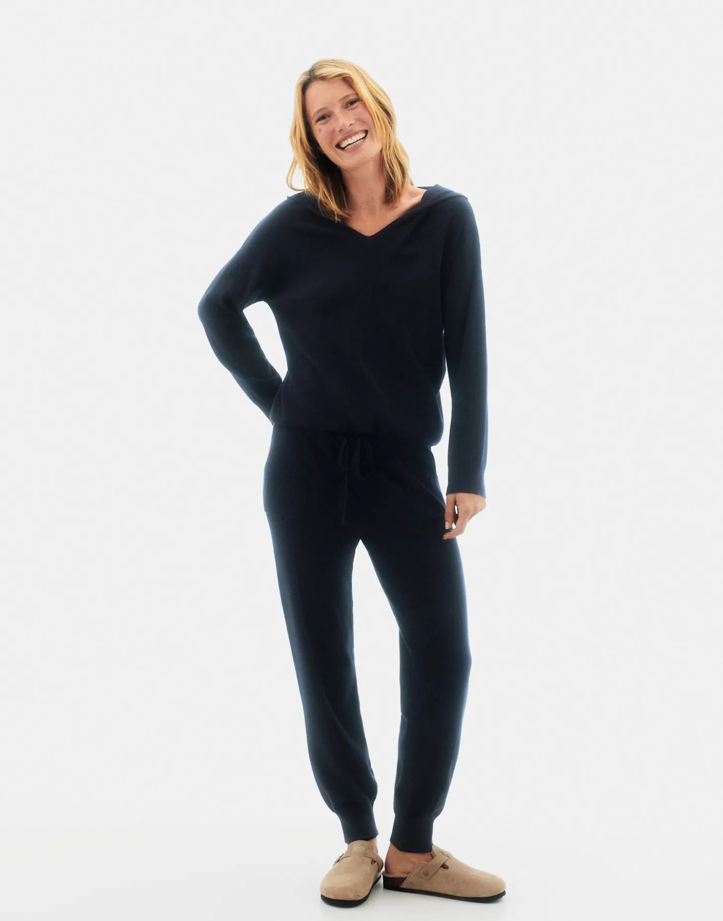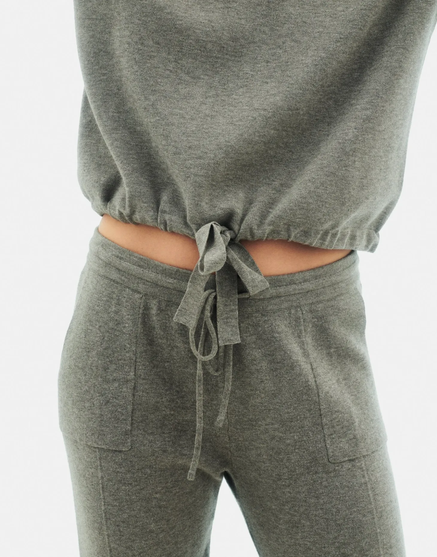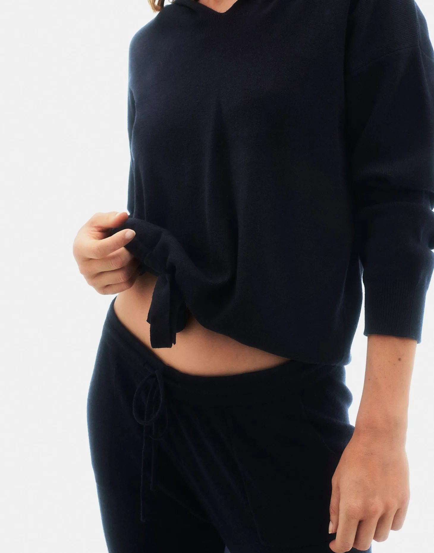 Jersey de punto de corte oversized, con cuello de pico, capucha y bajo ajustable mediante lazo.