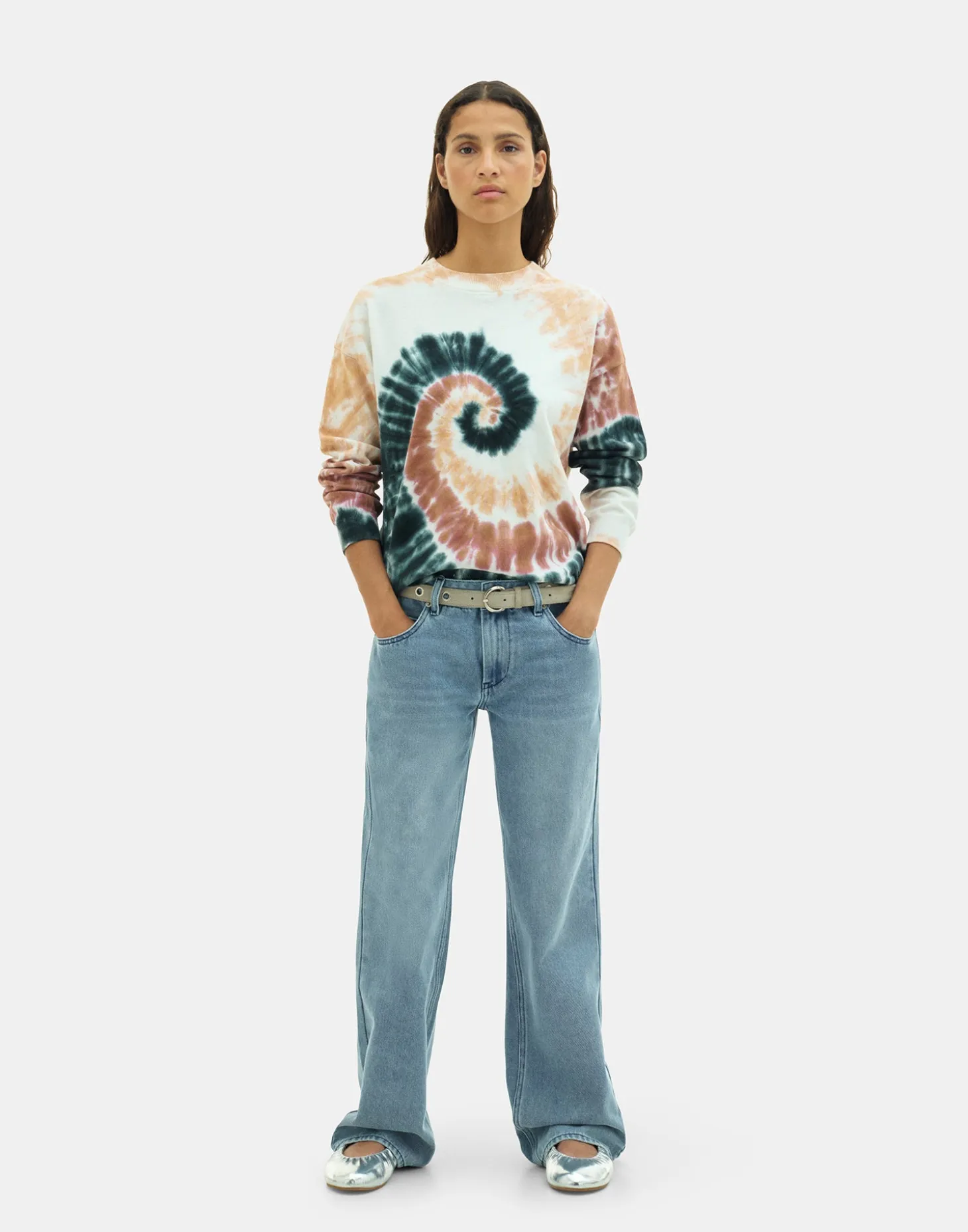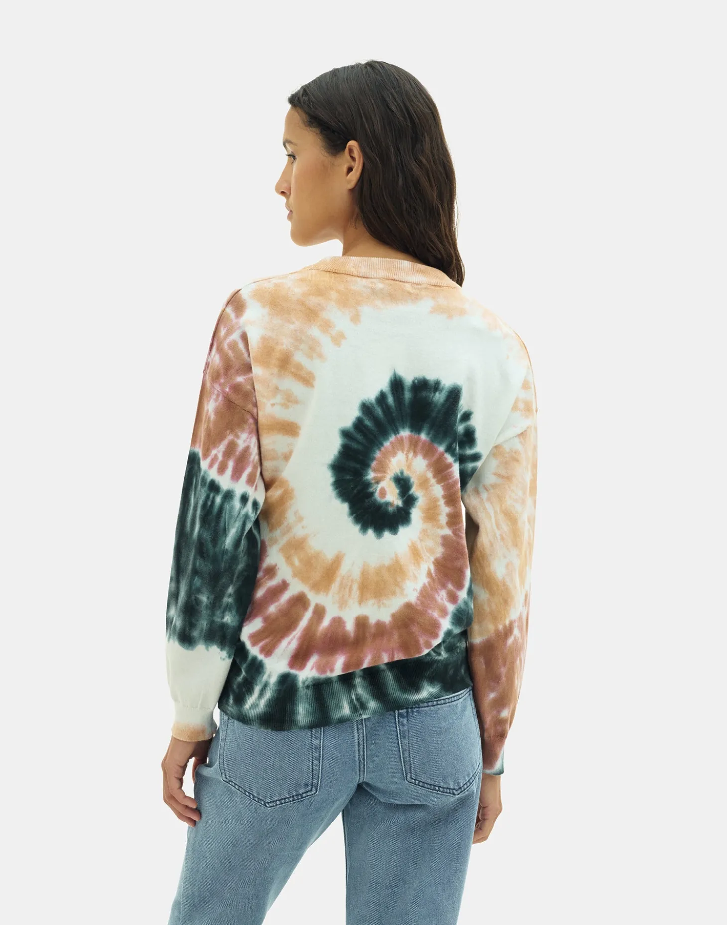 Jersey de cuello redondo, con estampado tie dye y acabados en rib.