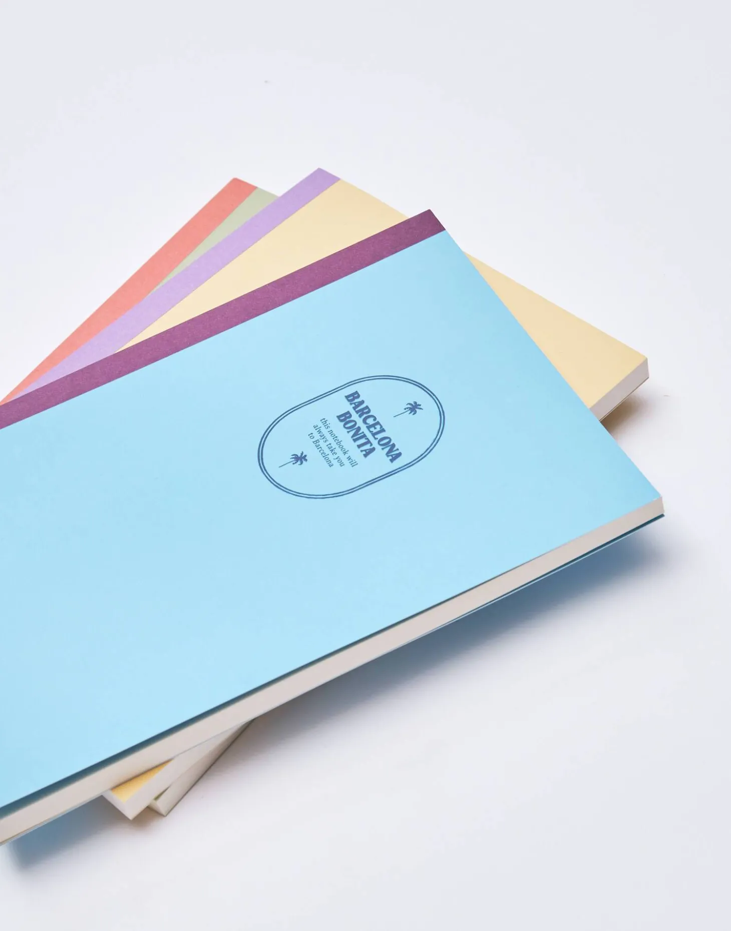 Libreta de tapa blanda con mensaje «Barcelona Bonita». Interior con 64 páginas lisas.