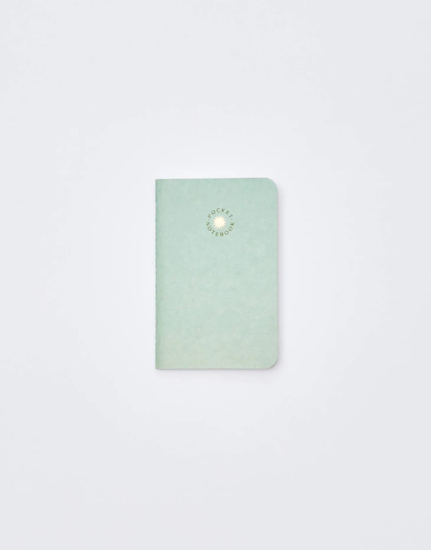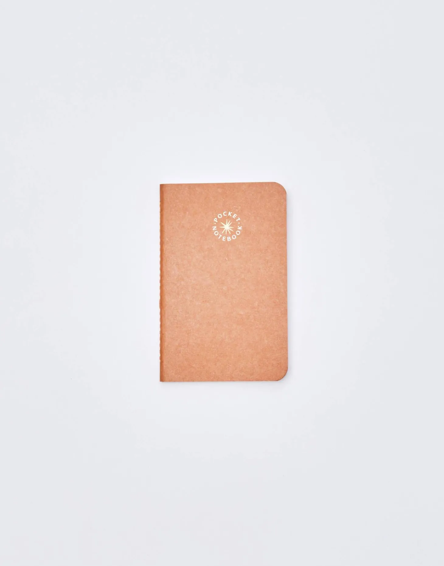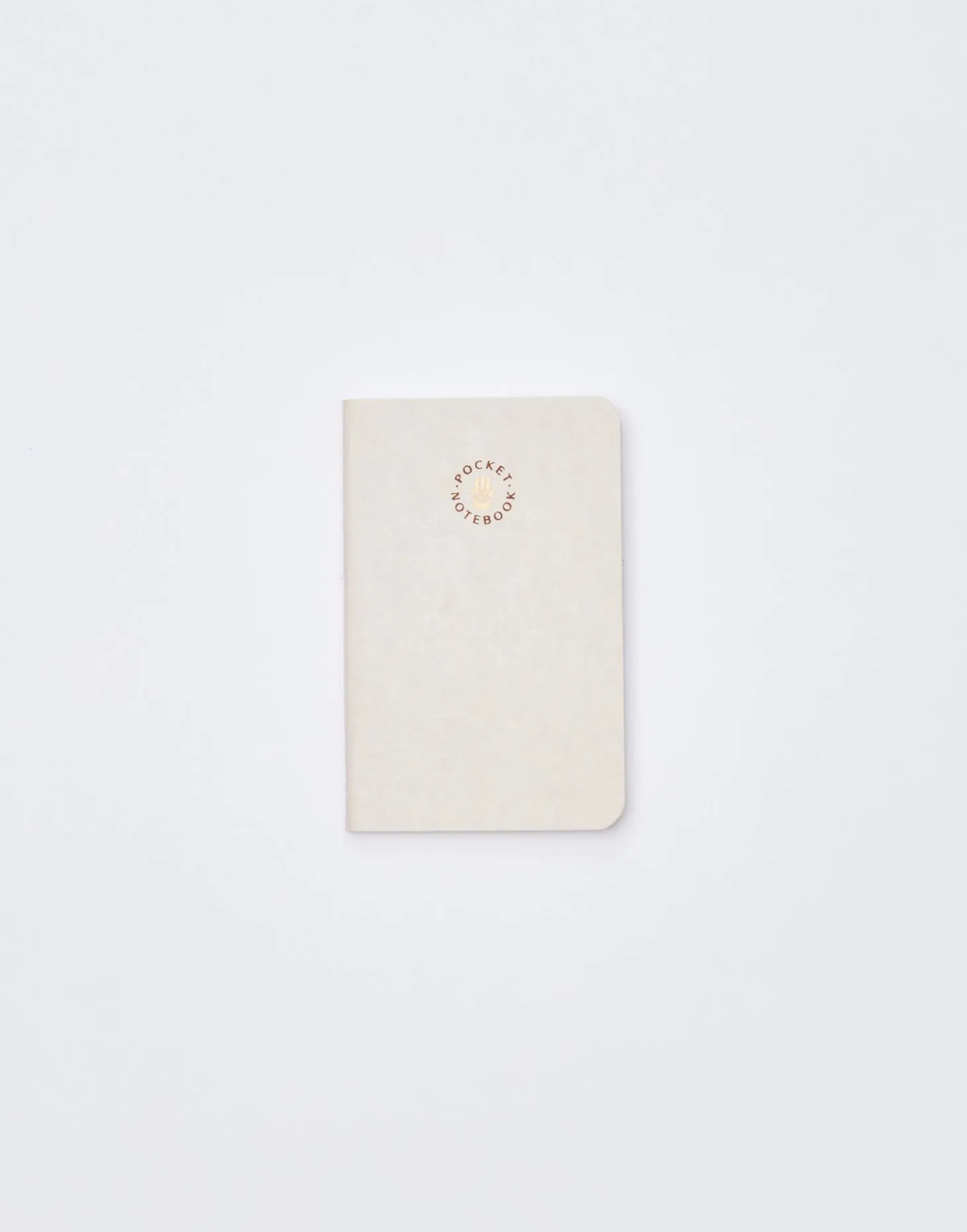 Libreta de formato pequeño con mensaje dorado en la parte frontal y tapa blanda. Páginas lisas.