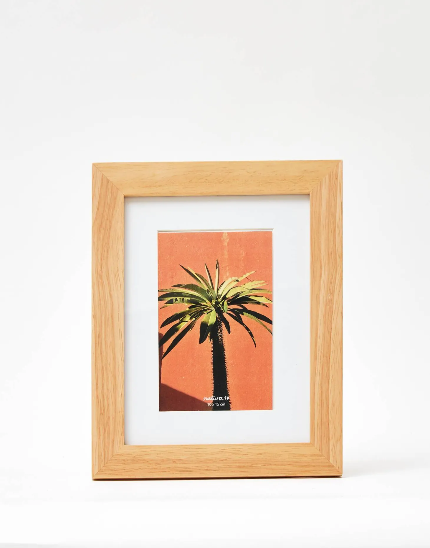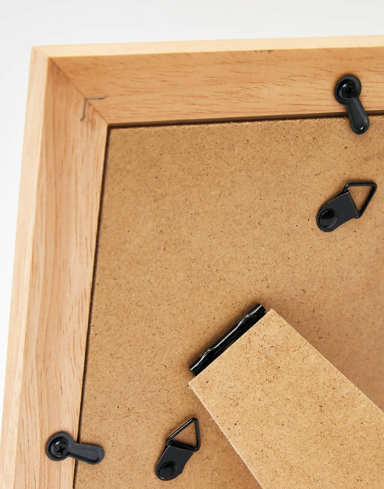 Marco de madera con pie en la parte trasera y pieza para colgar. Para fotos de 10×15 cm.