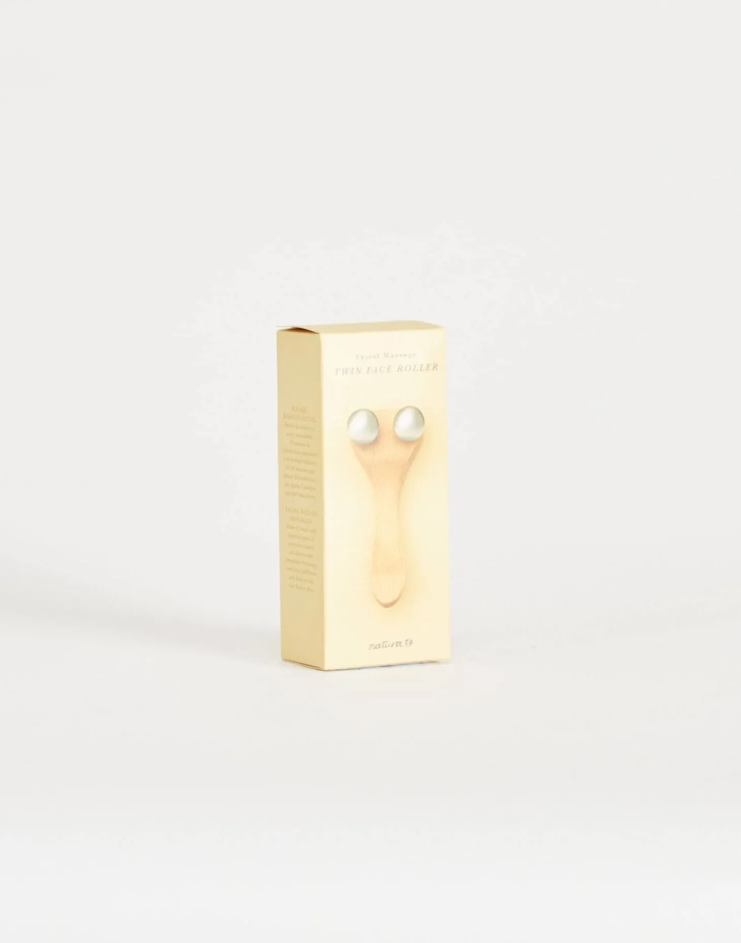 Rodillo de madera para masaje facial, con dos bolas de acero inoxidable. Promueve la circulación sanguínea y el drenaje linfático, se adapta a los contornos naturales del rostro para realzar, masajear y rejuvenecer su apariencia.
