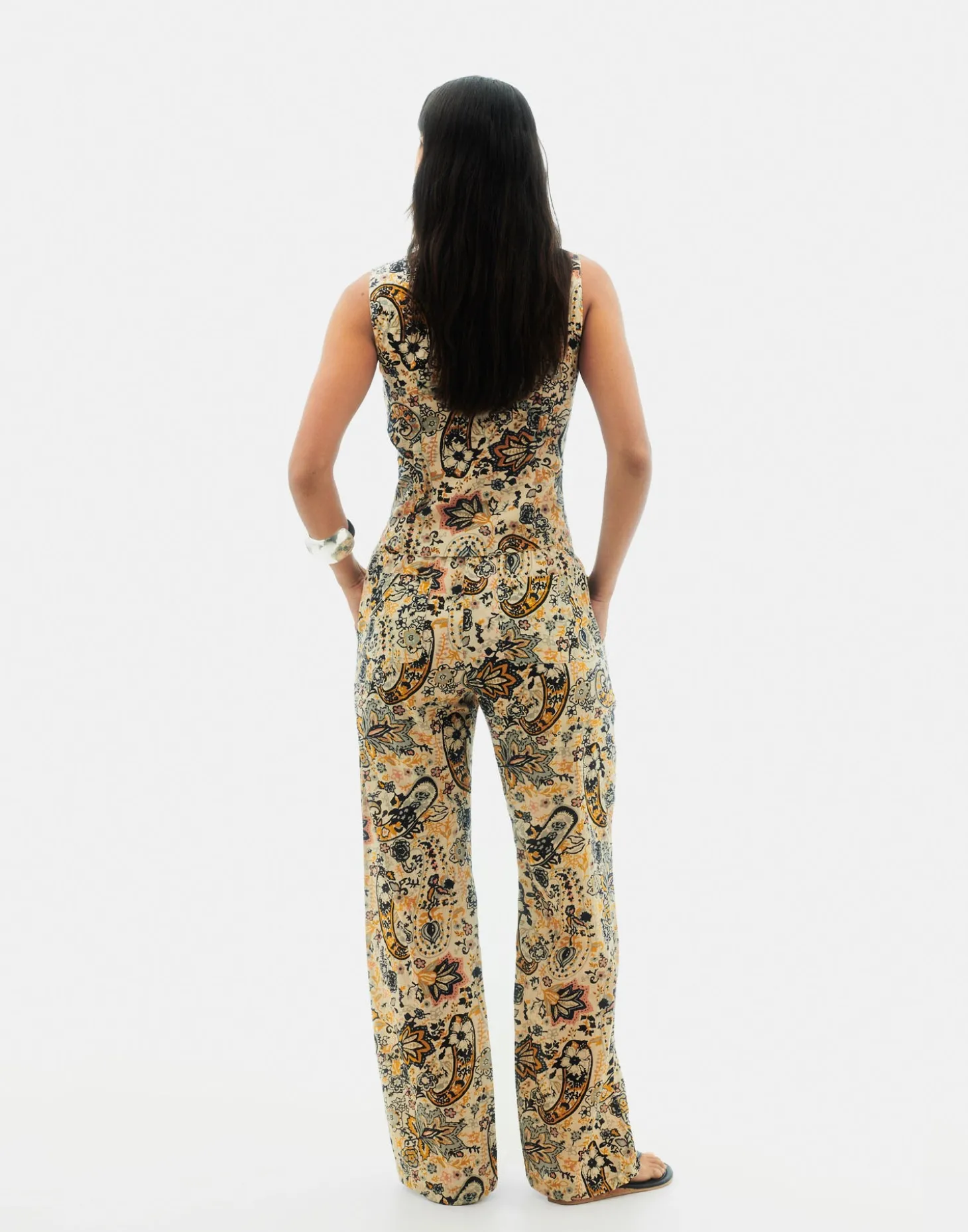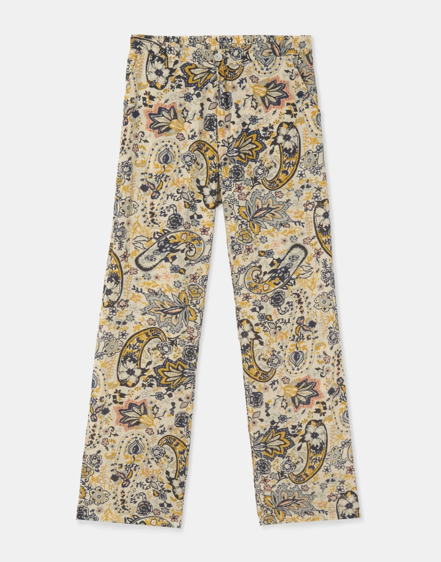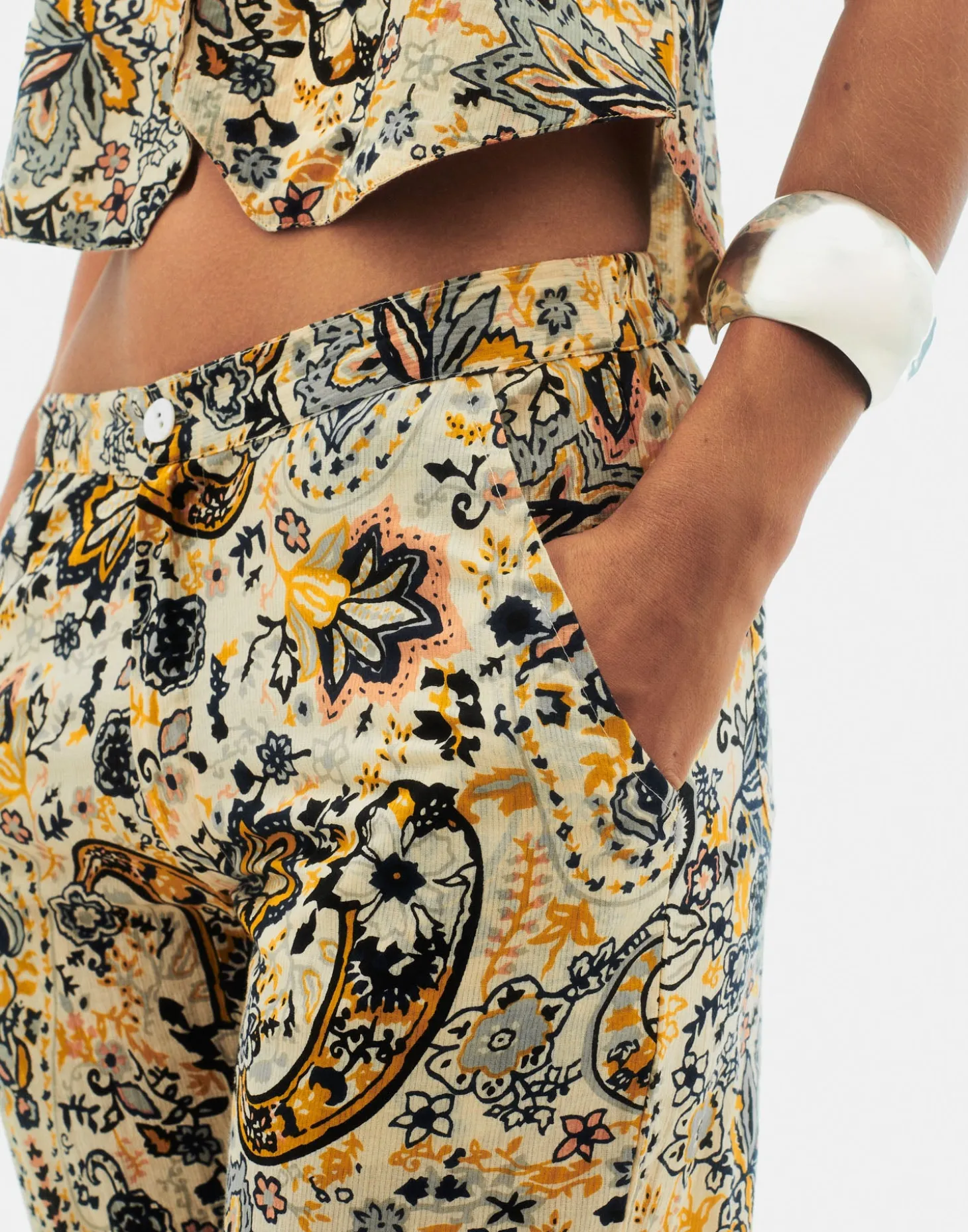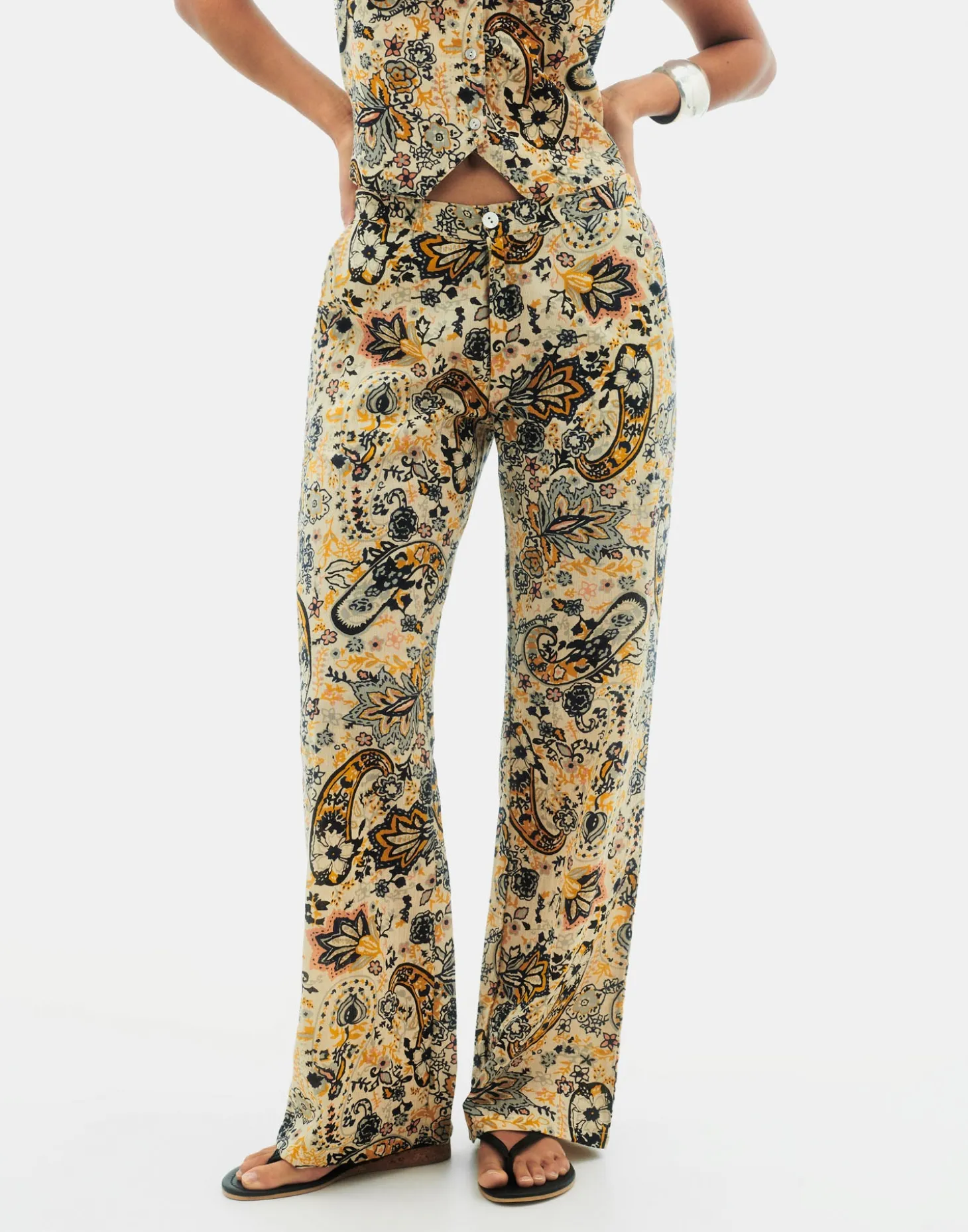 Pantalón estampado de corte recto, con cierre de botón y cremallera y bolsillos laterales.
