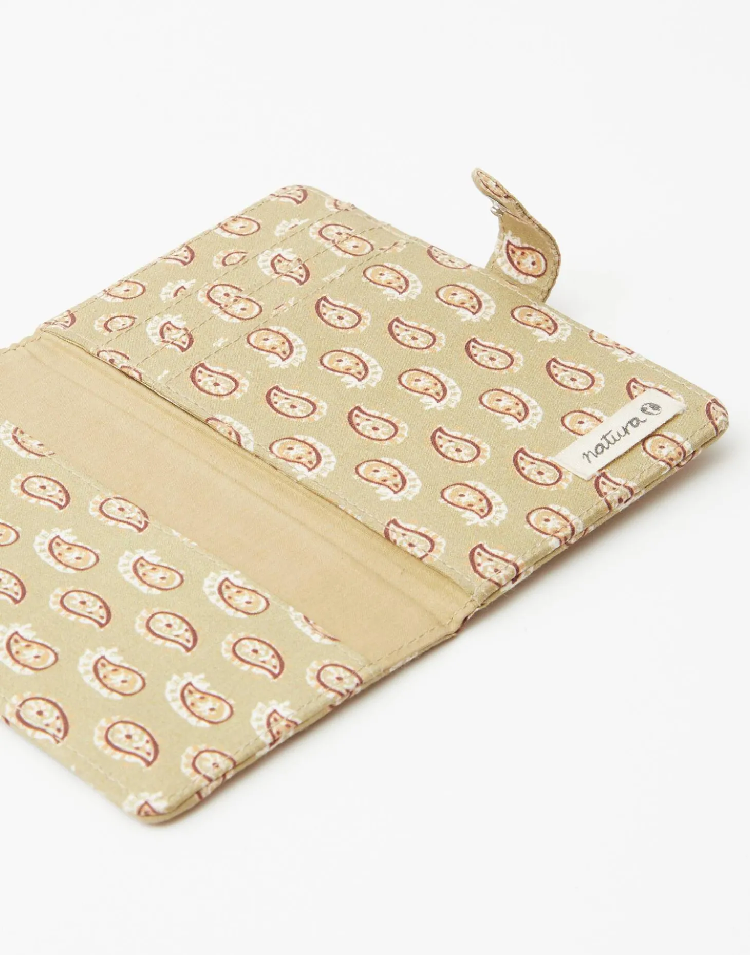 Pasaportera de tela con espacio para colocar las cubiertas de tu pasaporte y llevarlo a salvo, además de otros compartimentos.