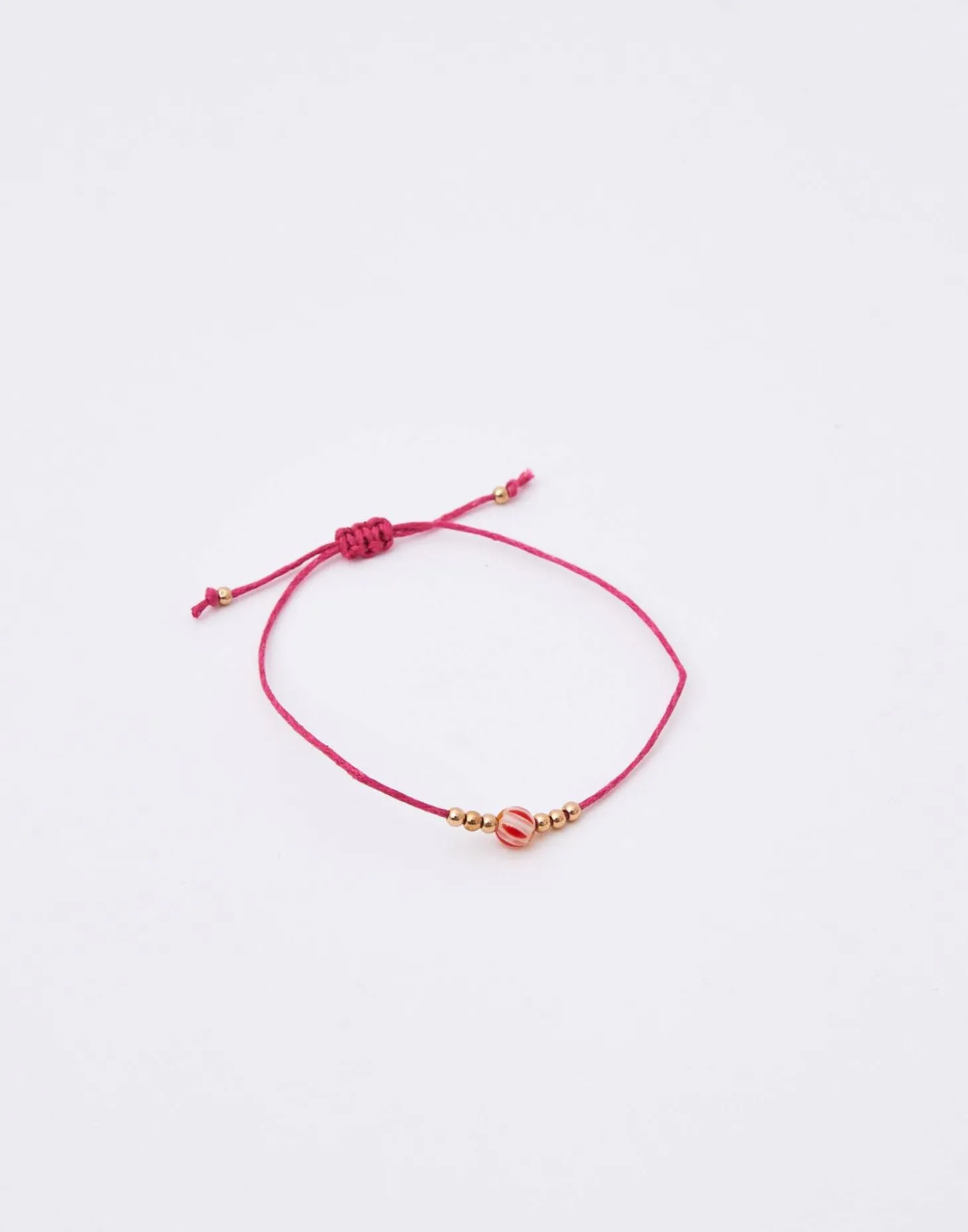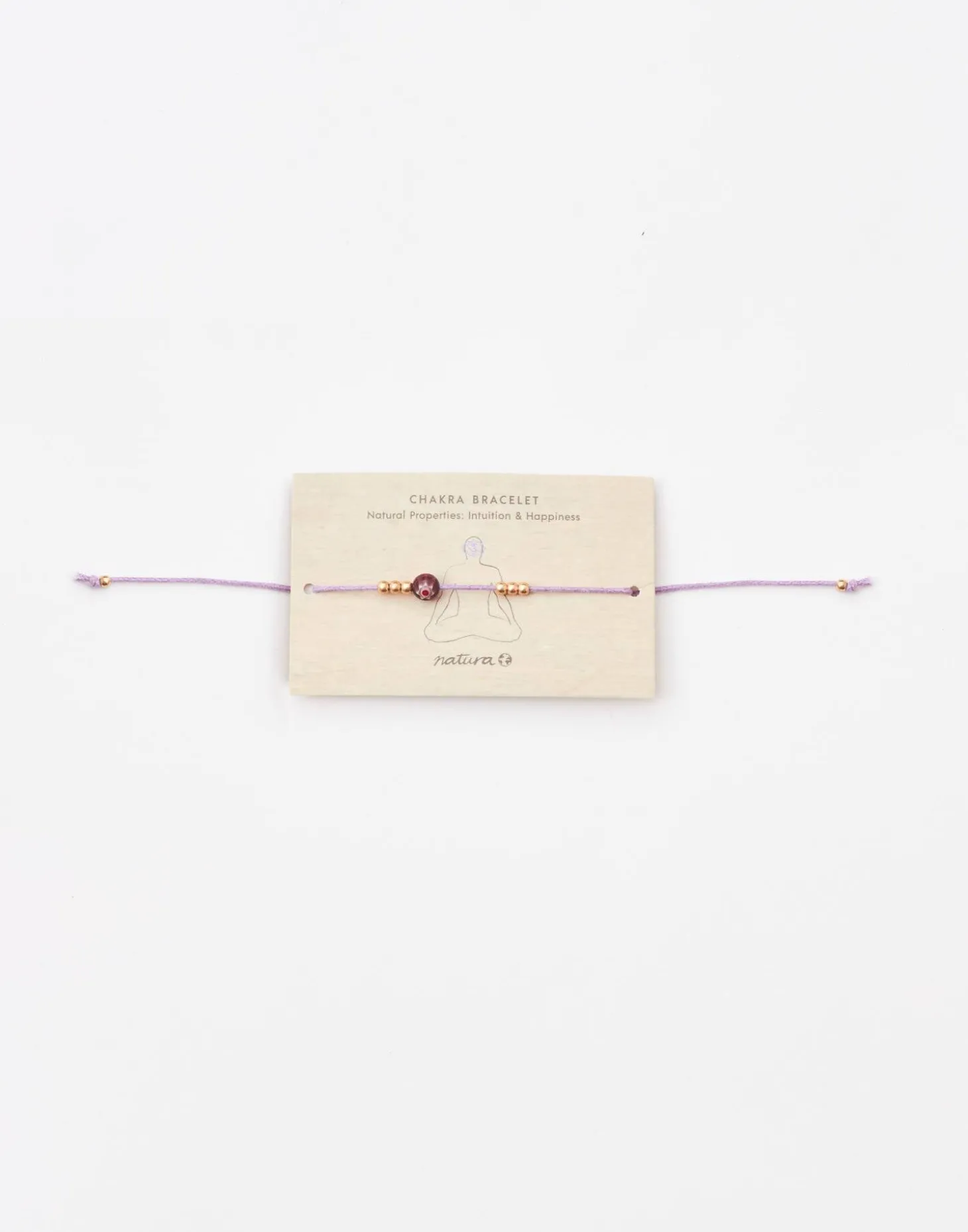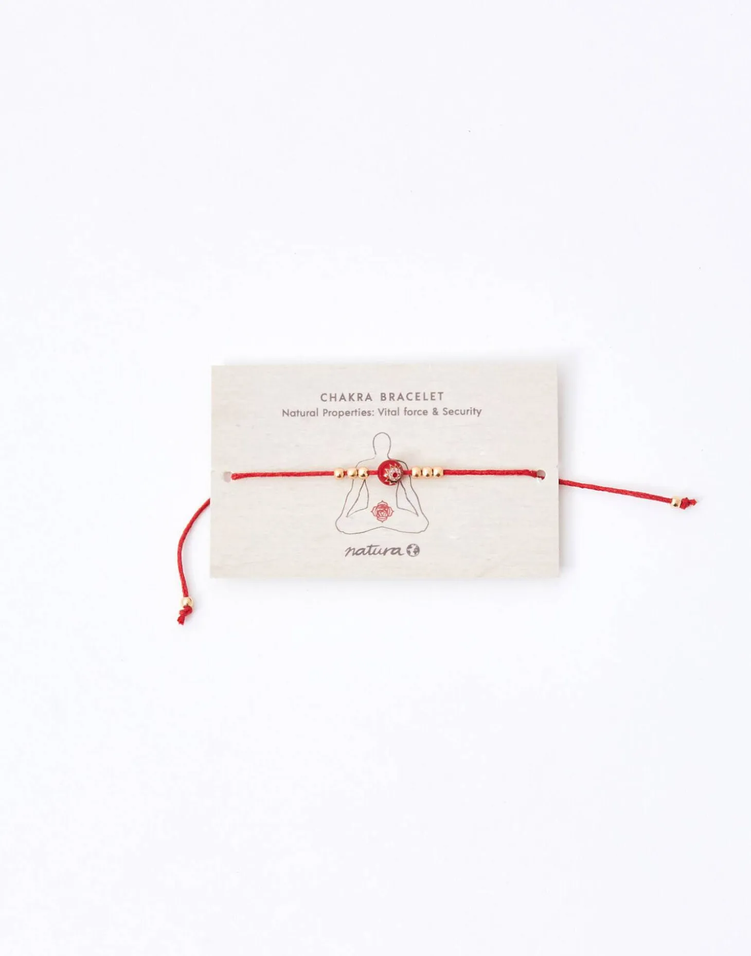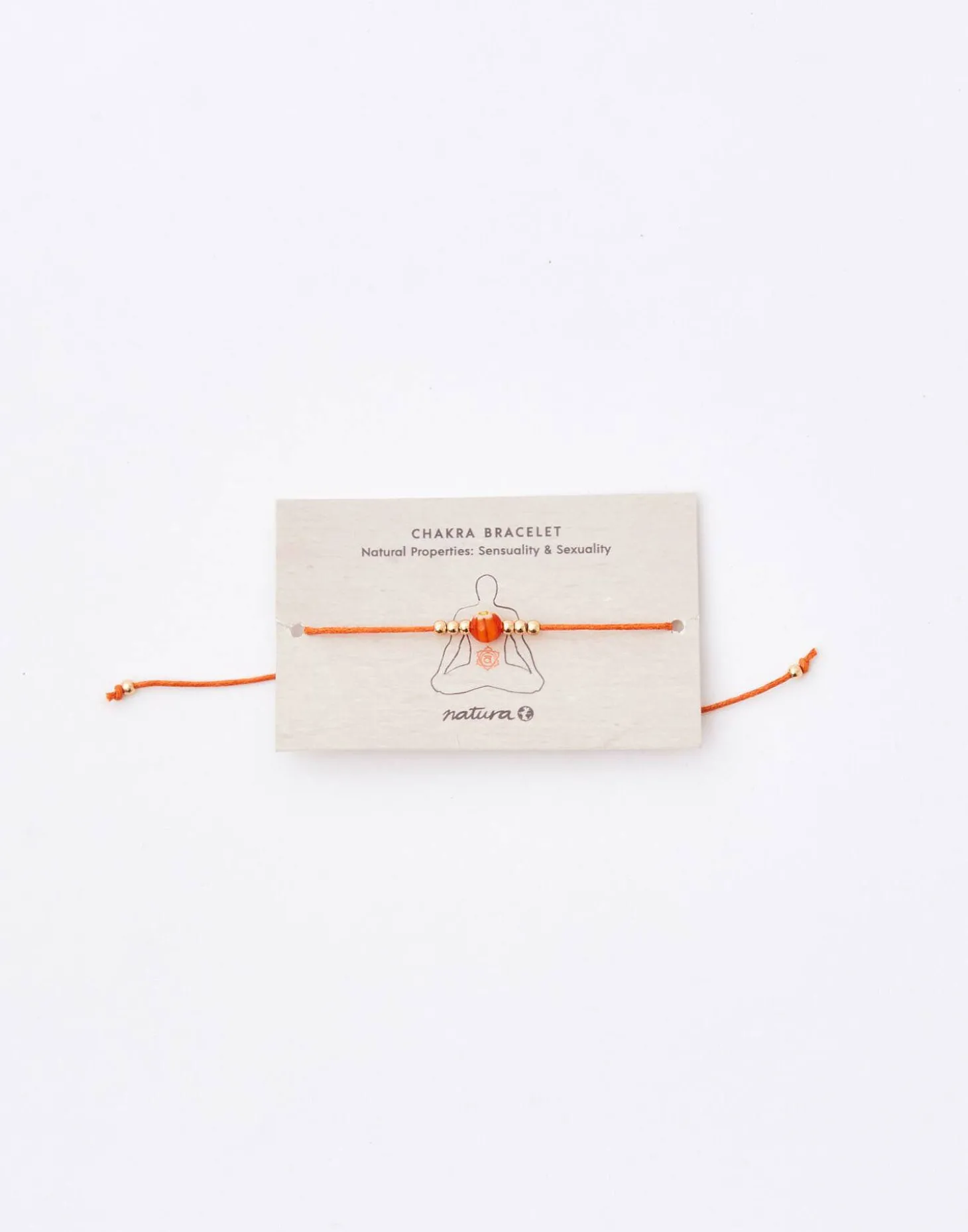 Pulsera de hilo con cuenta del color correspondiente a cada chakra y detalle de flor. Cierre de nudo corredizo.