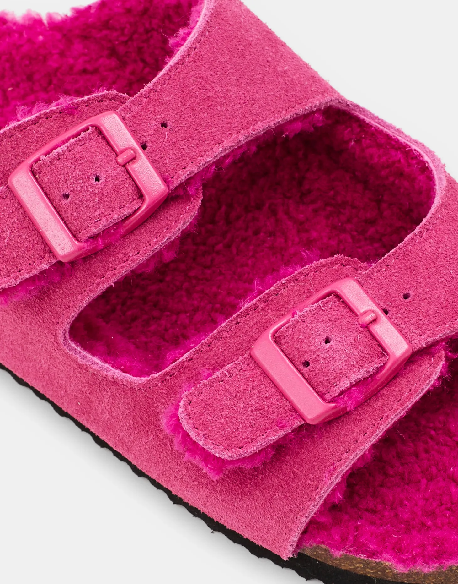 Sandalia con suela ergonómica de corcho. Ancho ajustable mediante doble tira de piel con hebillas y forro interior de pelito para que puedas usar tu sandalia favorita también en invierno.
