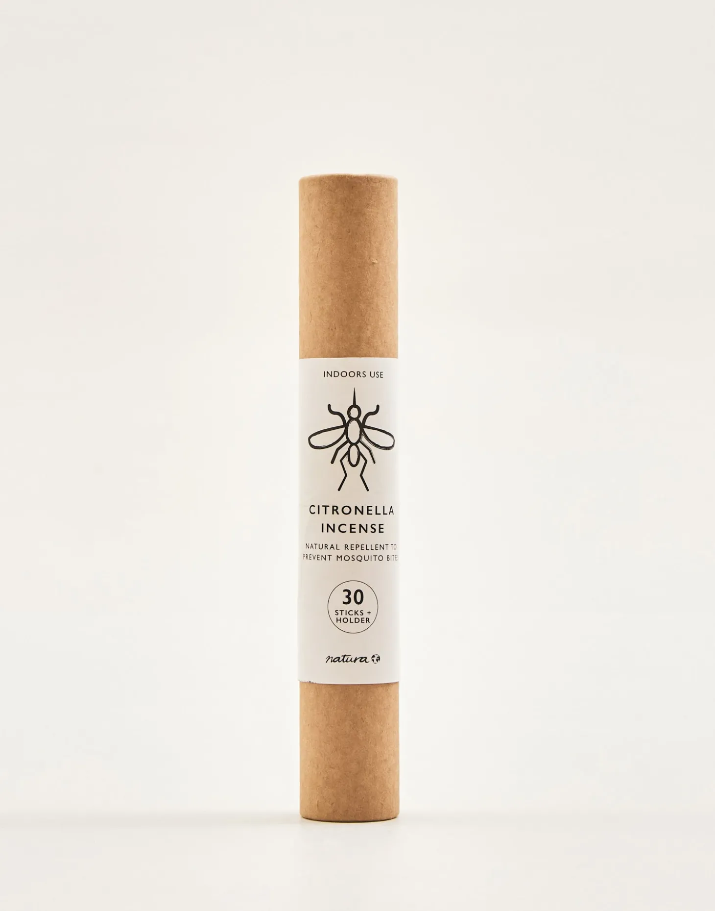 Repelente natural de mosquitos de citronela en formato incienso. Incluye 30 varillas y portaincienso.